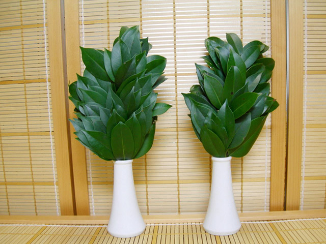 サカキの枝は昔から神事の際に用いる玉串として利用されてきました。今でも神棚にあげるのに使用されます。葉は厚みがあり深緑色で光沢があります。初夏に小さな黄色い花をつけます。秋から冬にかけて種が黒紫色に熟します。