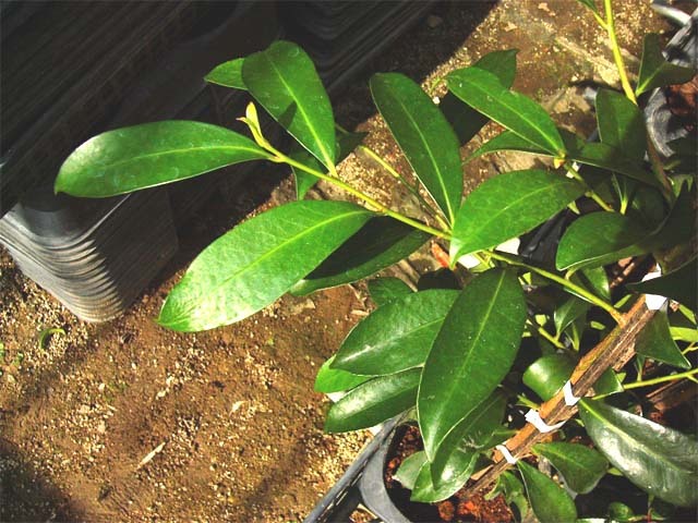 サカキは根強い人気があります。神棚のご神前にあげる枝の木です。なるべく陰に植えるようにしてください。