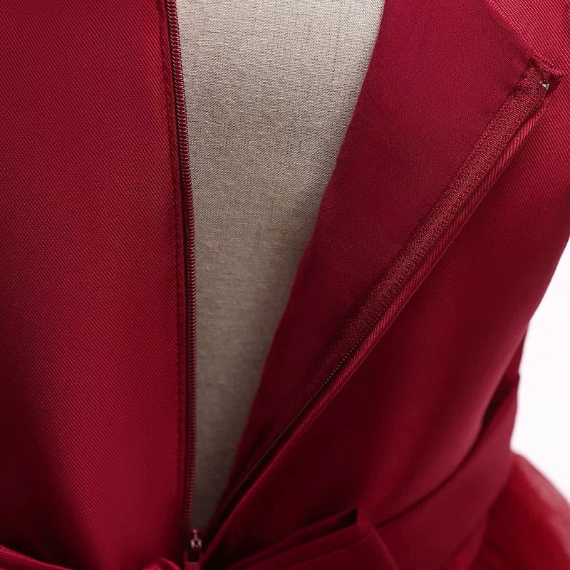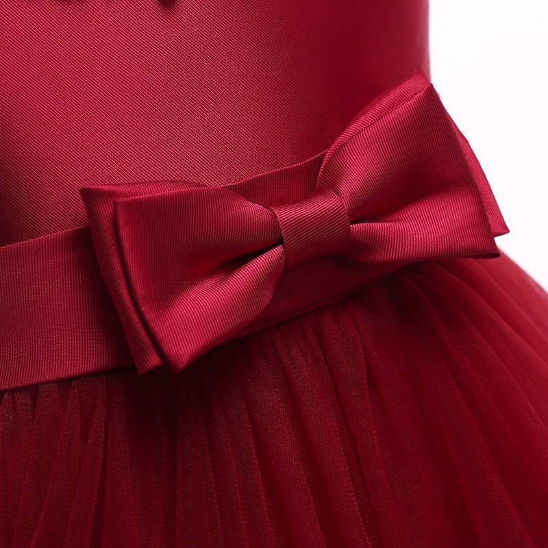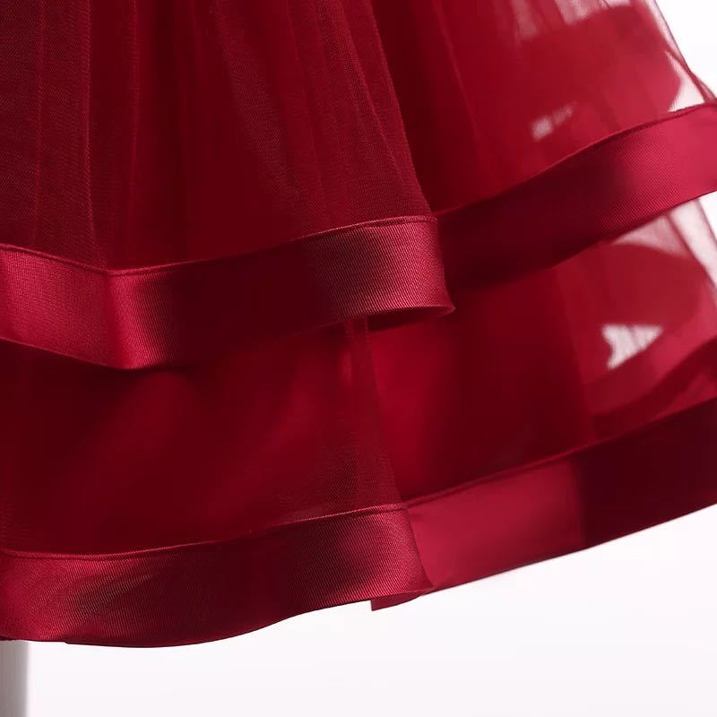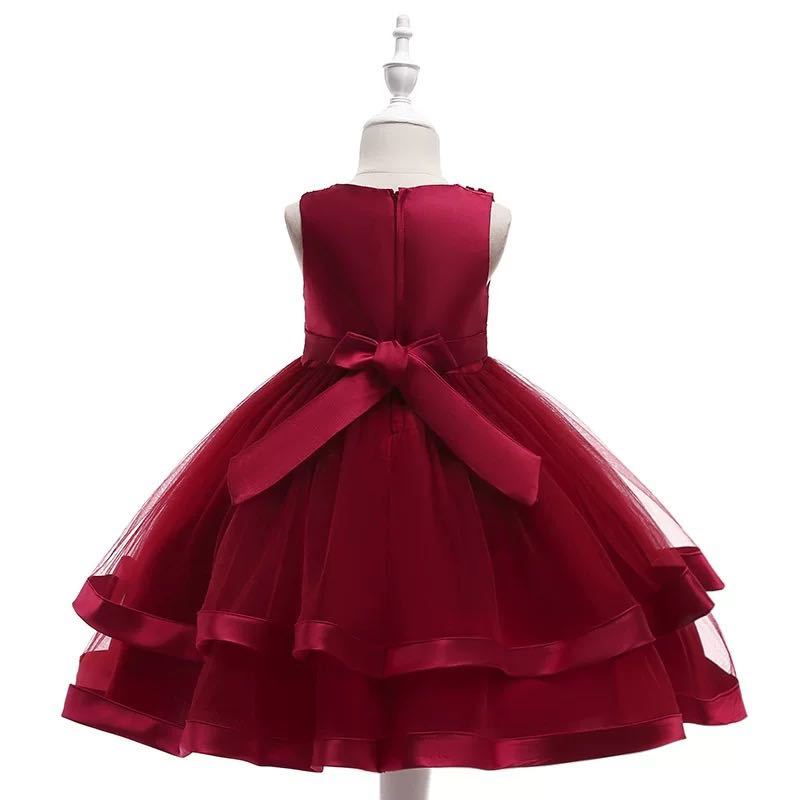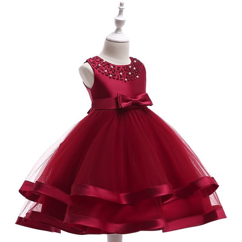 流行カラーのワインレッドキッズフォーマルドレスです。