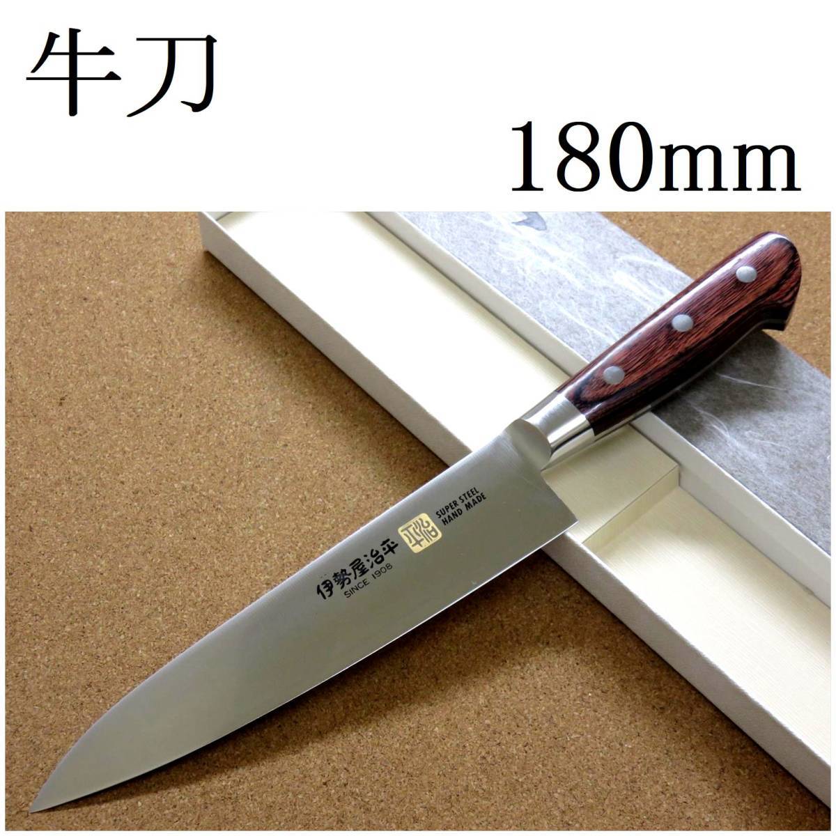 関の刃物 牛刀 18cm (180mm) 伊勢屋治平 モリブデン マホガニー 口金付き 家庭用の洋包丁 肉 魚 野菜切り パン切り 両刃万能包丁 日本製