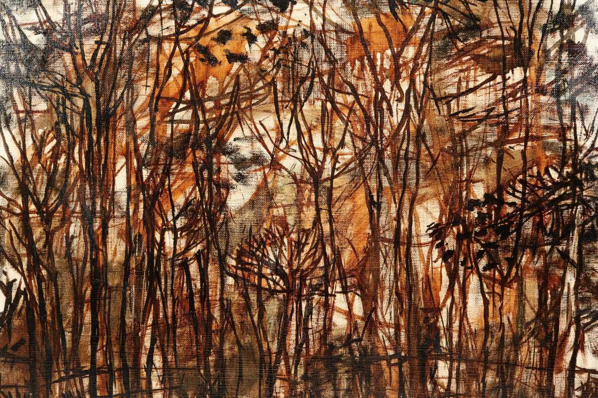 鬱蒼と生い茂る様を力強くも早い筆致で描いた