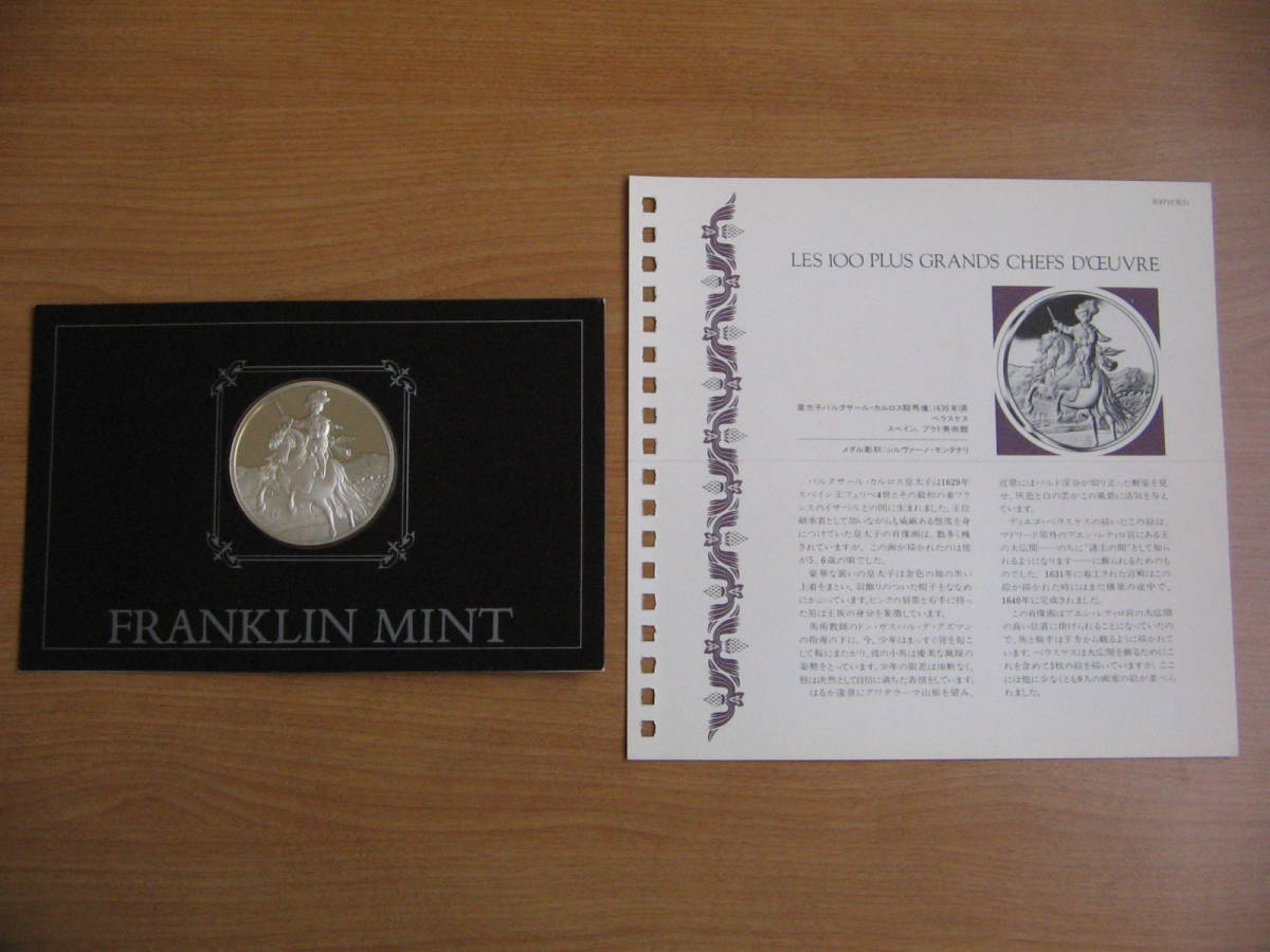フランクリンミント 925銀メダル『 ベラスケス 皇太子バルタサール・カルロス騎馬像 』 /LES 100 PLUS~プルーフメダル franklinmint