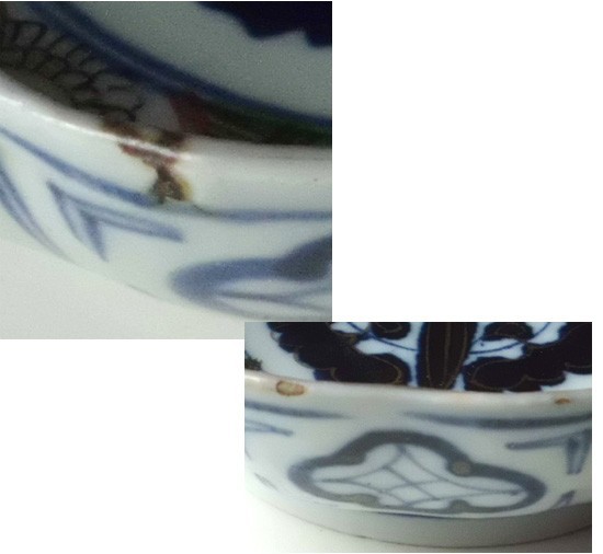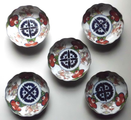 幕末~明治期の品、当時の職人の手描き製で、 温かみのある見栄えのする図柄のなます皿、五枚揃え売りです。 ◆サイズ◆ (最大部分) w16.7×h3㎝程 ◆状態◆ 内1枚に縁の虫食い(釉薬の剥がれ)跡、 内1枚に成形時の乱れ跡があるも、 後のほつれやヒビなどは見受けられません。 (画像を参照下さい。) |