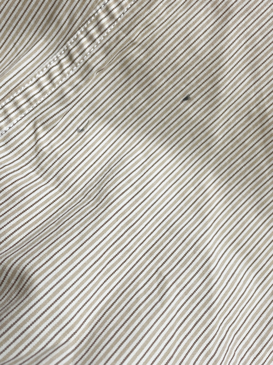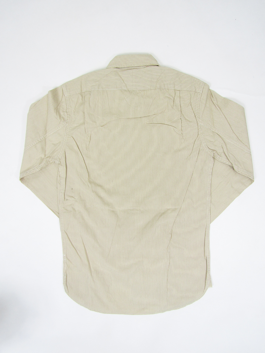 アクセス頂きありがとうございます。 こちらはアメリカ新品 RRL ダブルアールエル長袖コットンシャツです。 綺麗なストライプです。 Made in CHINA 100% cotton Men's size(US) S 着丈 (cm)76.5cm 身幅 (cm)50cm 肩幅 (cm)41.5cm 袖丈 (cm)64cm *着丈:背面襟元中央~裾まで直線、身幅: 脇下~脇下まで直線、 肩幅: 肩先~肩先まで直線、袖丈:肩先~袖口まで直線、 裄丈:背面襟元中央~肩を通って袖口まで *サイズは慎重に計測しておりますが、計測方法や商品の材質、 個体差で誤差が出ることがございますのでご了承ください。 アウトレット理由 背面左脇に汚れがあります。 その他、多数出品しております。 こちらもご覧下さい |