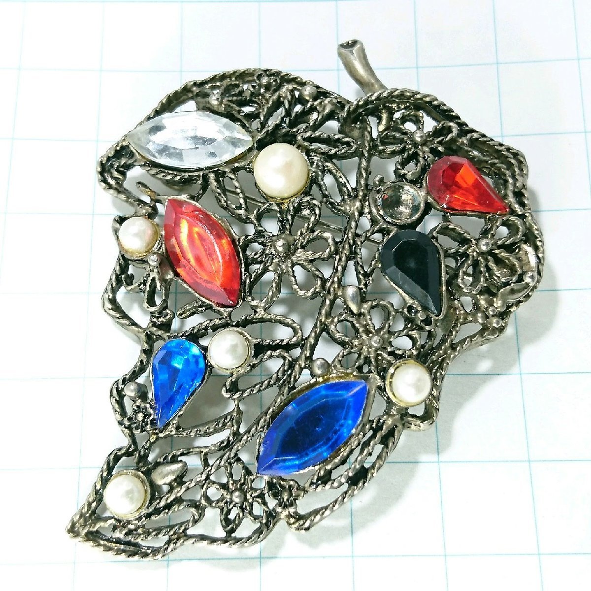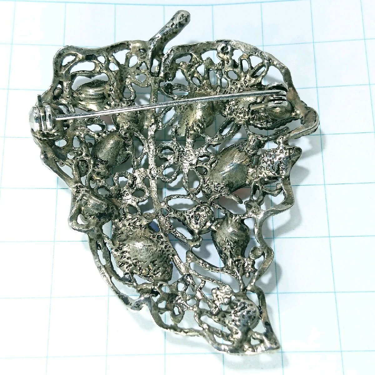 送料無料)ビンテージ☆ラインストーンバラエティ 葉っぱモチーフ☆アンティークブローチ A14608