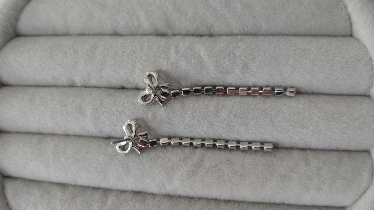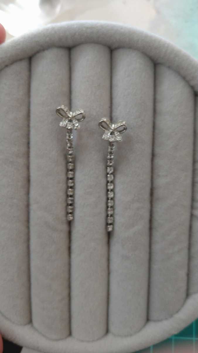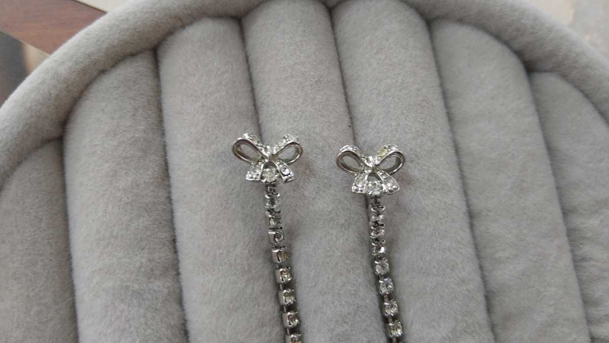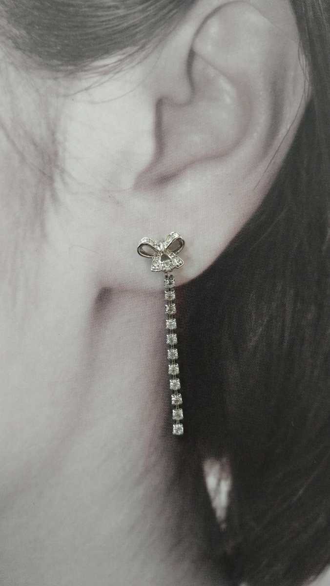 揺れるラインストーン×シルバーカラーリボンのピアスです