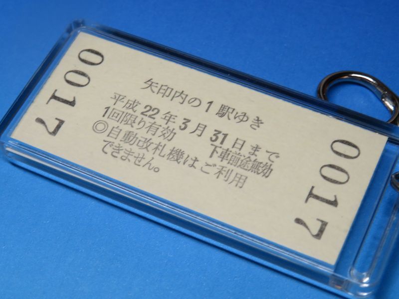 ・本物の硬券(B型券)を、透明キーホルダーにしたものです。