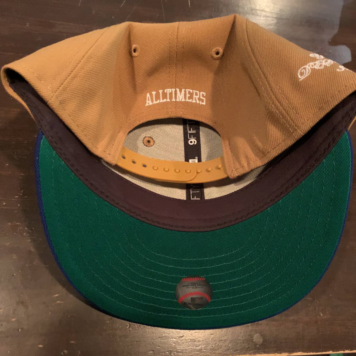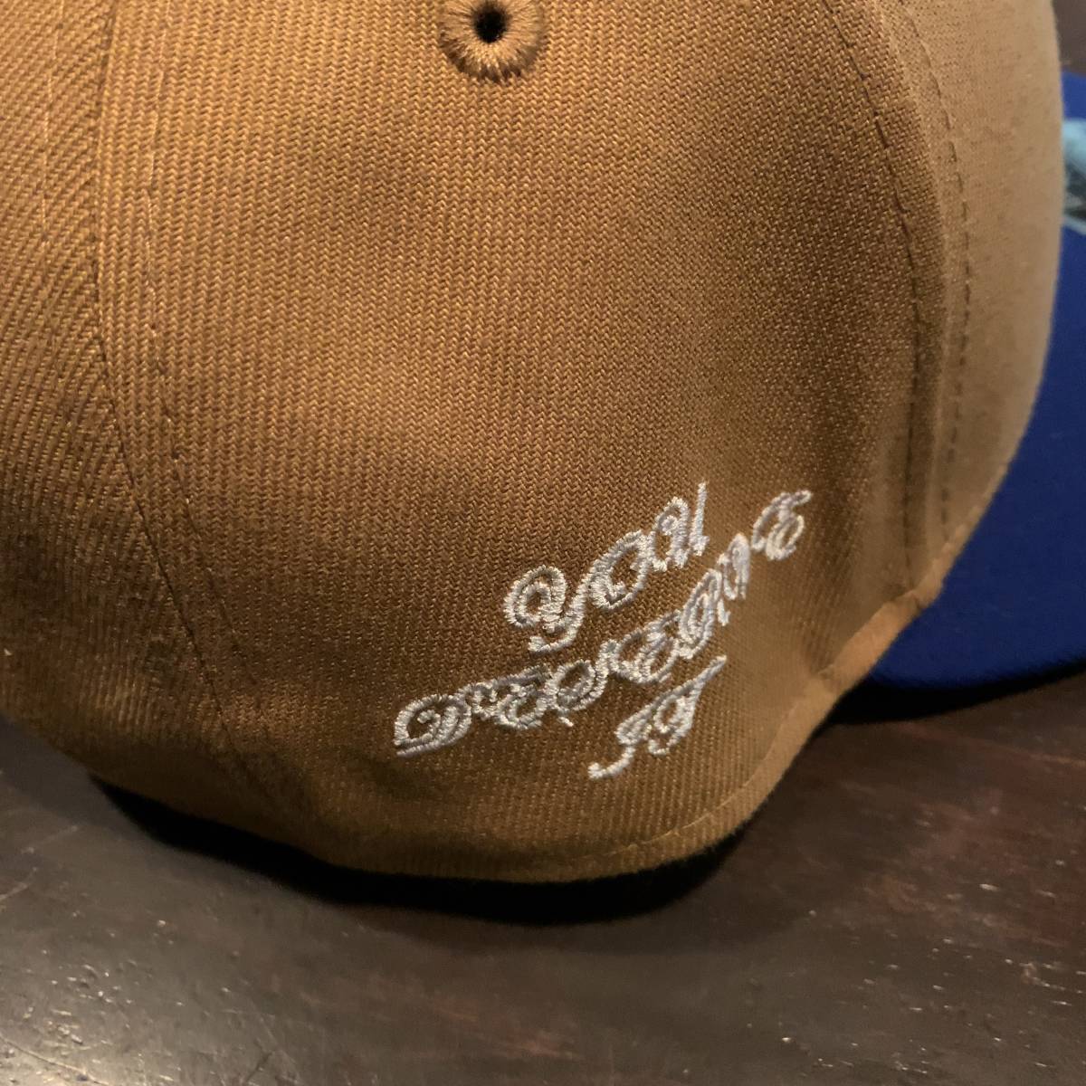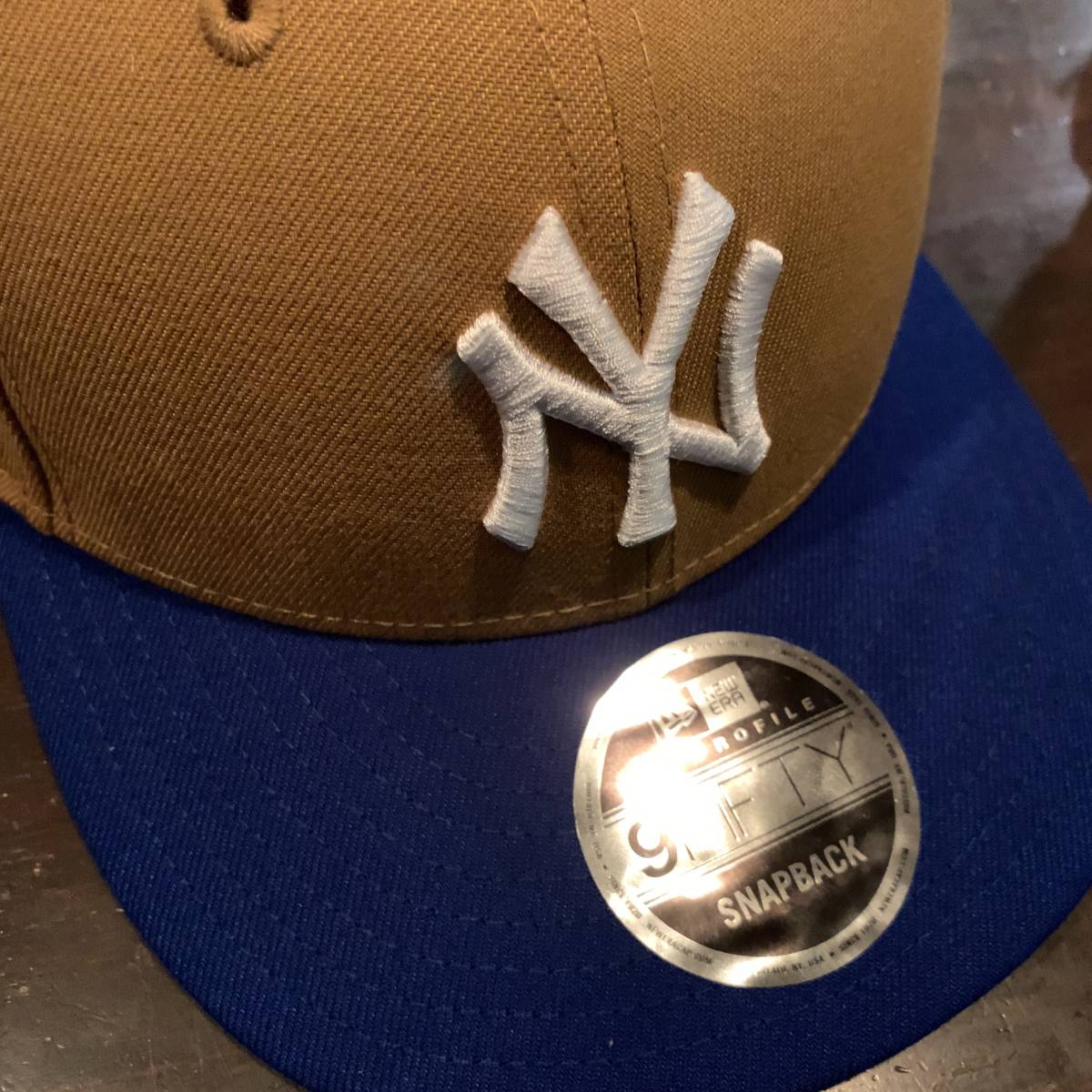 カラーはブラウンxブルー、NYロゴやalltimersロゴ、サイドの刺繍はホワイトです。