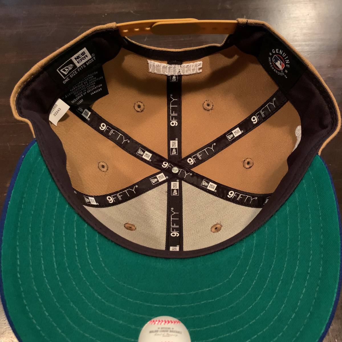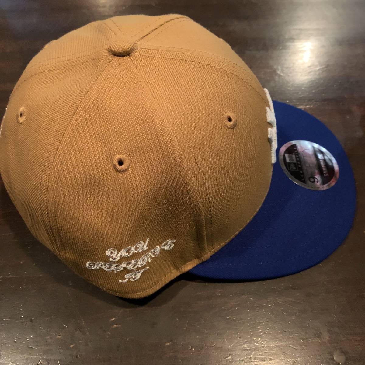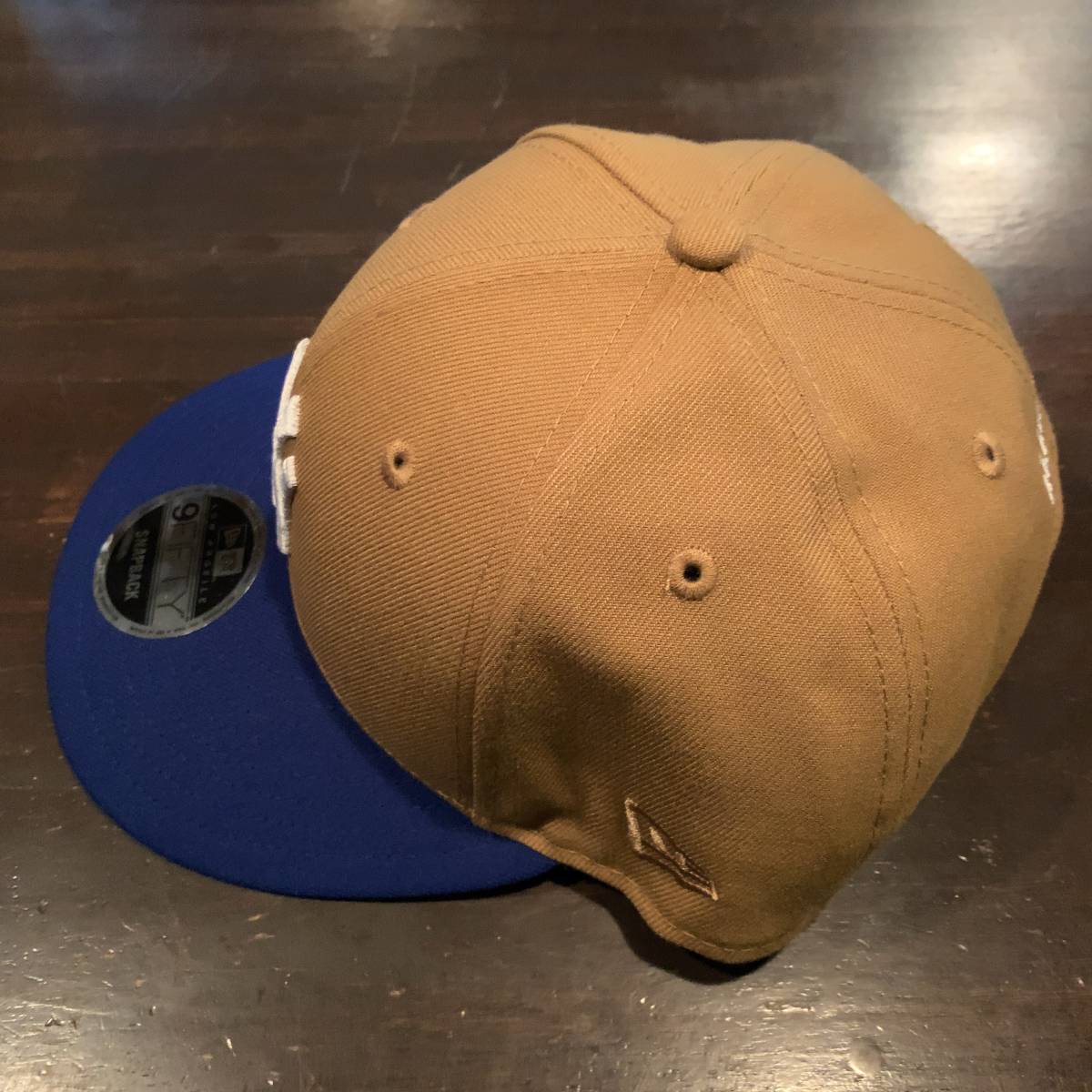 カラーはブラウンxブルー、NYロゴやalltimersロゴ、サイドの刺繍はホワイトです。