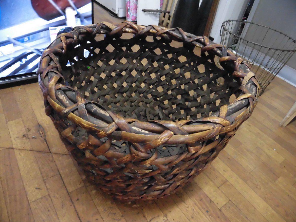籐の籠になります。 【サイズ】 直径 48cm 高さ 37cm 写っているものが全てです。 状態も含めて写真にてご確認下さい。 | ||||
