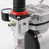 ・サイズ(約):本体 L310×W130×H310 mm ・電源コード:約1.8m ・馬力:1/5HP 消費電力150w ※注意 連続作業時間は20分以内となっております。 電源:AC100V(50/60Hz) 最大空気圧:4.0kgf/c〓 タンク容量:3L エアー吐出量:20~23L/min 騒音値:低騒音45db 付属品:エアーホース(1/8 BSP 約3.0m) エアーレギュレータ/ウォーターセパレーター(圧力計付) 3Lエアータンク付きオイルレス 小型エアーコンプレッサーの特徴 タンクが付き、安定したエアー供給が可能になりました。 長時間使用時などのポンプ連続運転時間が軽減され耐久力大幅UP  ネイルアート やエアーブラシ 作業など、屋内使用も可能なコンパクトタイプ! 付属のエアーレギュレーター/ウォーターセパレーター(圧力計付)でエアー圧調整も楽々! 静音設計のピストン式採用で、約45dbの低騒音を実現! 圧力が約4.0kgf/c〓時に自動停止、3.0kgf/c〓時に再起動する安心 便利な設計です  3Lタンクには安全弁(セーフティーバルブ)付きで安心  エアー吐出口及び付属のホースは1/8 BSPとなっております。  通常の1/4"タイプのホース、エアーツールは接続出来ませんので別途1/8"~1/4"への変換アダプターをご用意下さい。