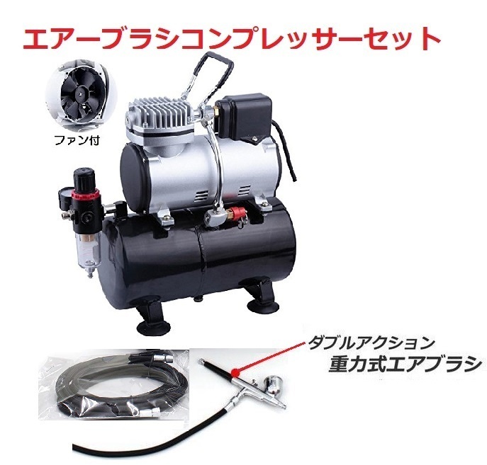 エア-ブラシ&コンプレッサ- セット エアーブラシスターティングキット エアコンプレッサー【簡易日本語説明書付】コンプレッサー