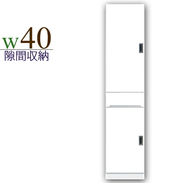 隙間収納 幅40cm 隙間家具 完成品 木製 鏡面 薄型 板扉 ハイタイプ ●ホワイト