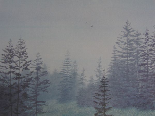 黒岩善隆、【鳥立ちぬ】、希少な額装用画集より、新品額装付、状態良好、送料込み.