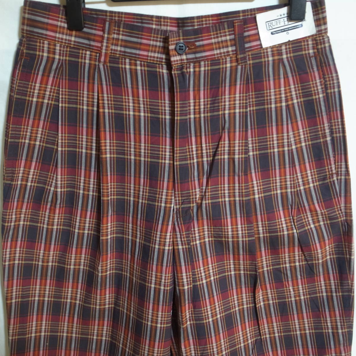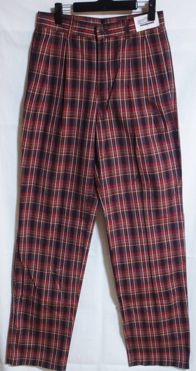 デッドストックタグ付き 綿100% スラックス S~M位 赤系 チェック メンズ 古着男子 タグ付き 未使用 未着用 新品