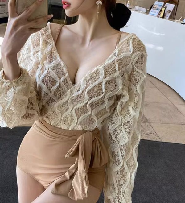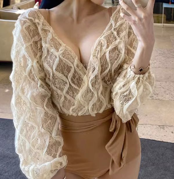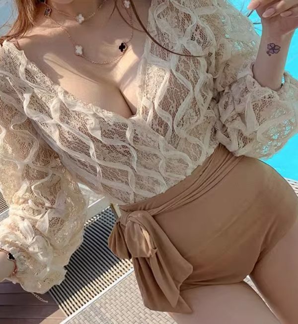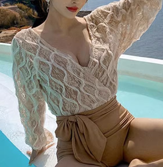 【イチオシ厳選商品】 レディース 水着 ワンピース ハイウエスト パフスリーブ メッシュ g51