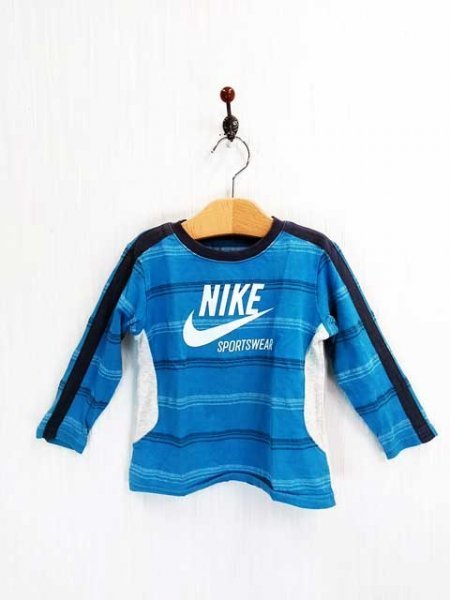 KU0373 ○送料無料 古着 NIKE ナイキ キッズ 長袖 クルーネック シャツ サイズ95~105cm ブルー 青 肌ざわり 男女兼用 ブランドロゴ