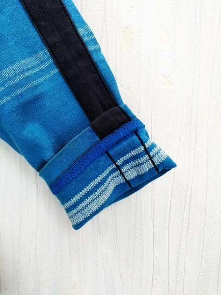 袖に太いラインあり、男の子でも女の子でも着られるデザインです。