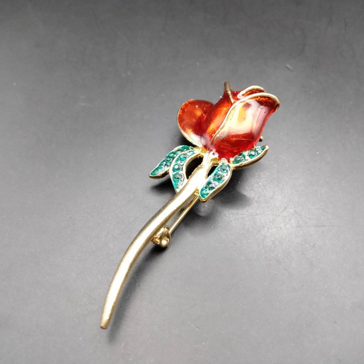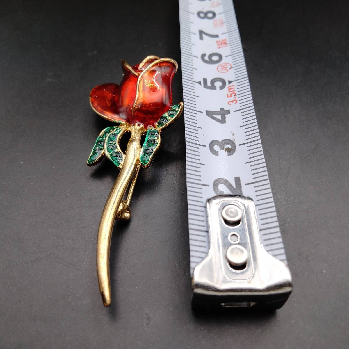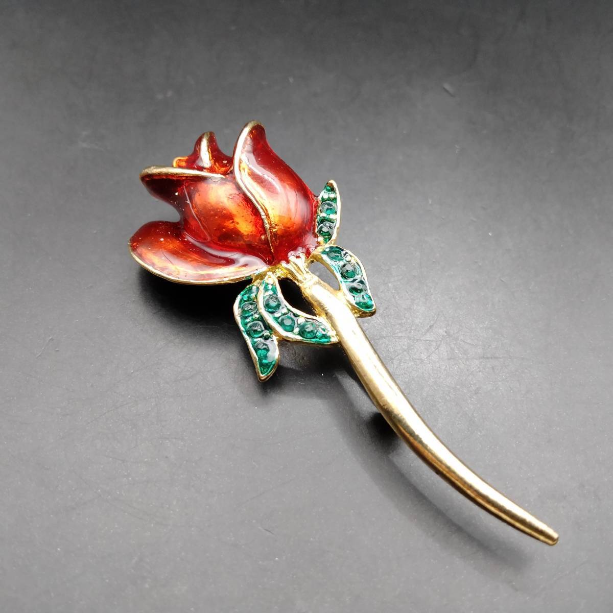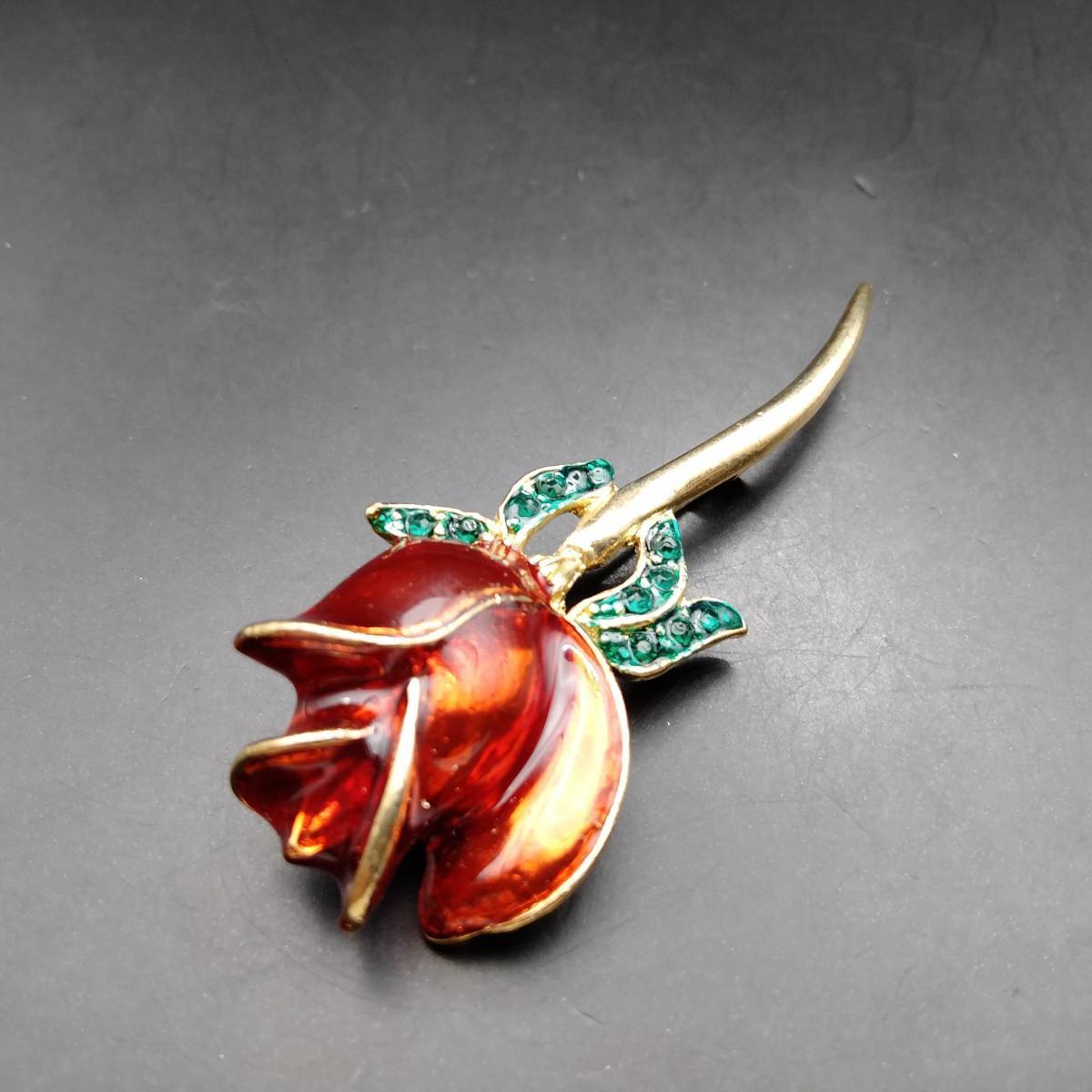 チューリップ フラワー レッド グリーン ラインストーン ビンテージ ブローチ 昭和レトロ コスチューム ジュエリー 輸入 7S-A