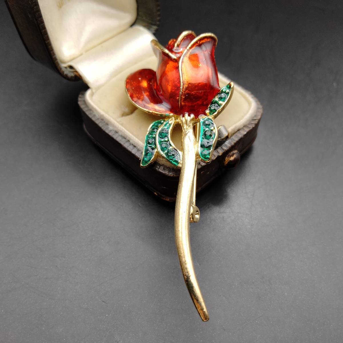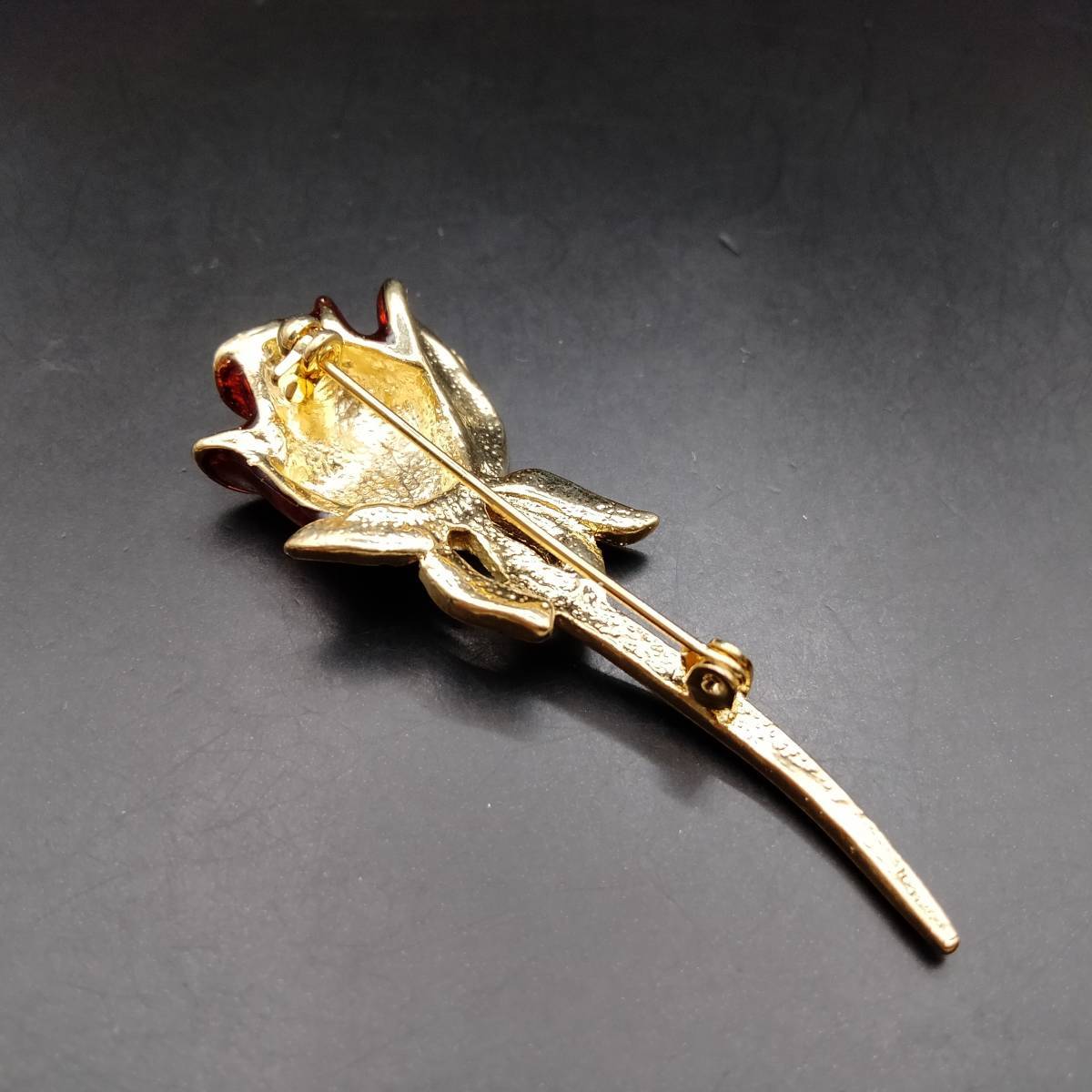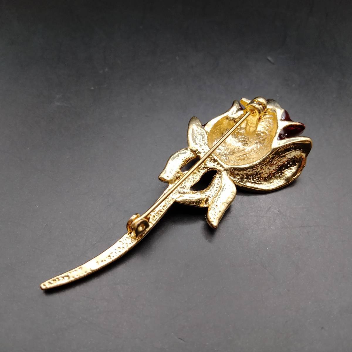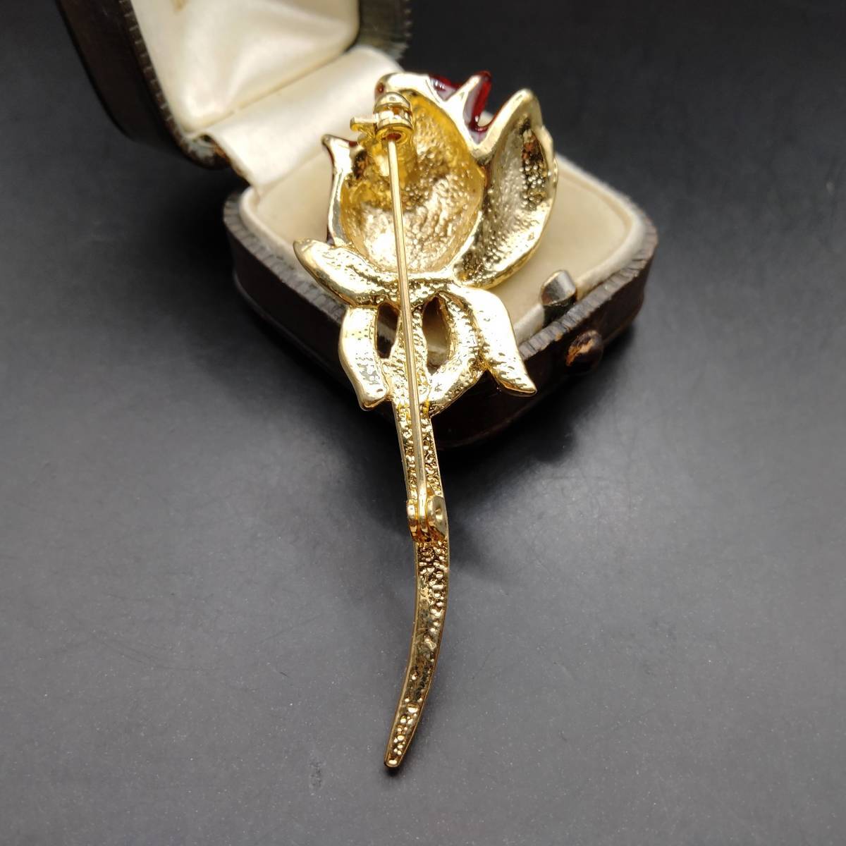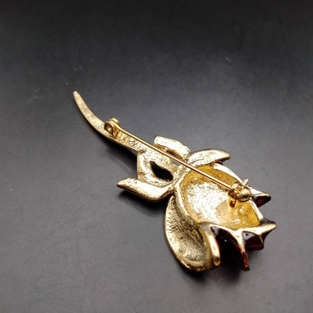 チューリップ フラワー レッド グリーン ラインストーン ビンテージ ブローチ 昭和レトロ コスチューム ジュエリー 輸入 7S-A