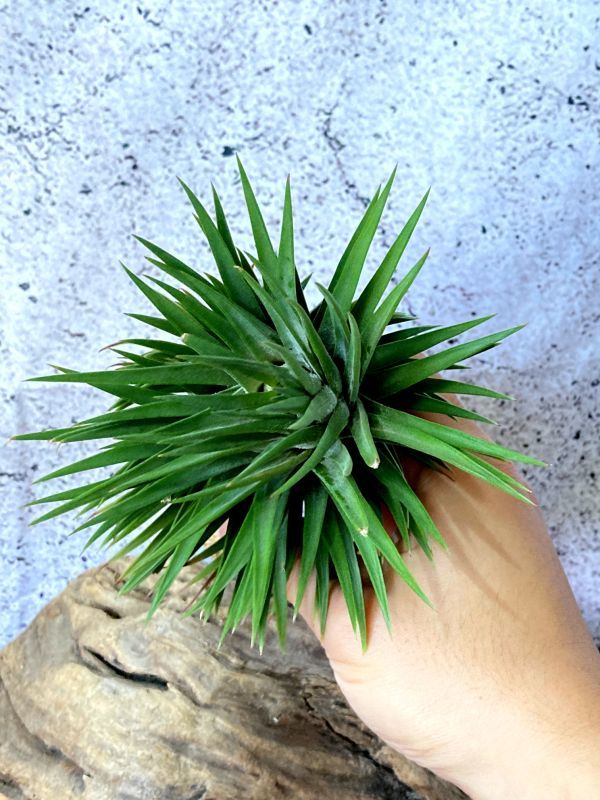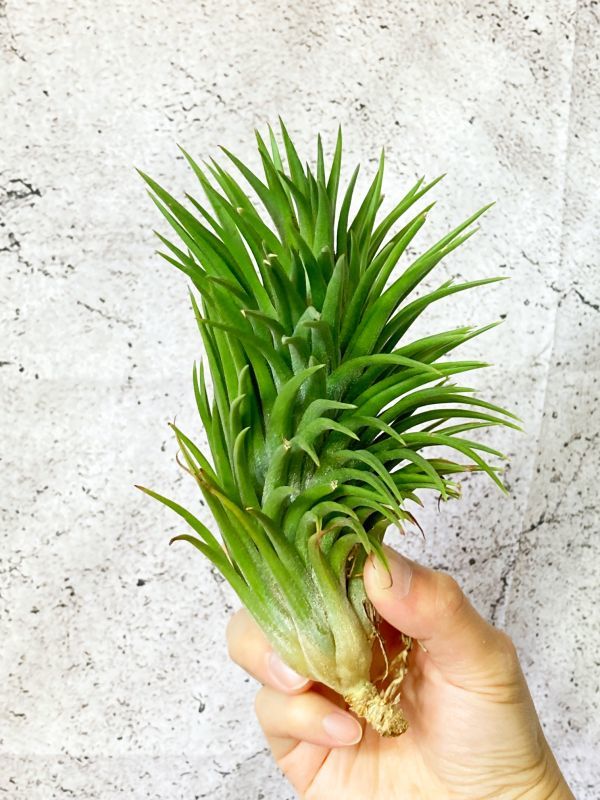 チランジア・イオナンタ・ビッグハワイアンはチランジア・イオナンタの栽培品種の一つ。 大きく成長するイオナンタで11cm~15cmほどまで成長します。 葉は多肉質で、弾力があります。葉には白いトリコームが見られ葉は外側に向かってカーブしています。全体的に他の大型イオナンタよりも基部が白っぽいのも特徴の一つ。 どっしりとした草型が魅力的でイオナンタ・マキシマよりも厚く短いのも特徴的。 開花期にはオレンジ色に紅葉し紫色の筒状の花を咲かせます。 なかなか流通しない珍しい品種でこちらは成熟したサイズなのでこの機会にぜひ! 画像の現品をお届けになります。 画像撮影日時2023/06/20頃
