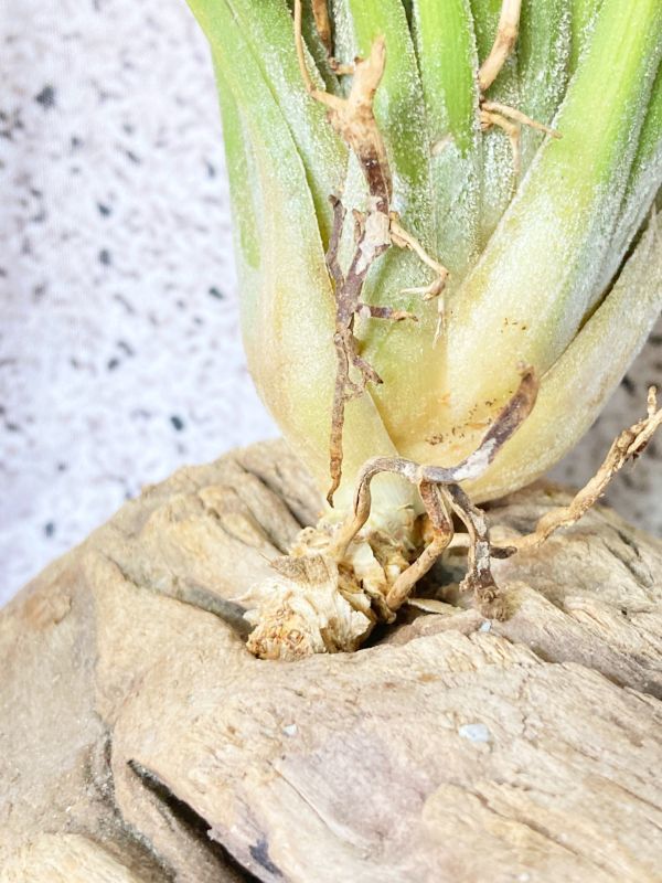 チランジアは前述したとおり葉の表面から水を吸収します。タンクタイプを除き根にはほとんど水を吸収する機能はなく樹木や岩などに着生する役割のほうが大きくなります。