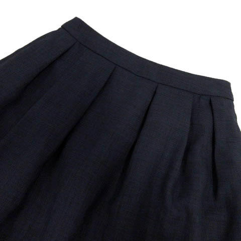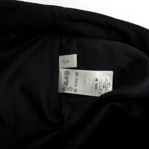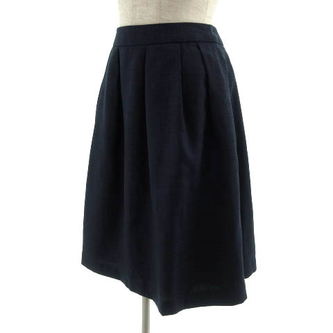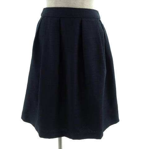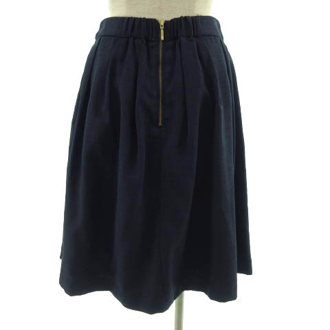 ビス ViS スカート 台形 タック ひざ丈 ウエストゴム ネイビー 紺 M レディース