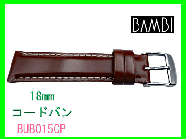 18mm バンビ コードバン ブラウン 白ステッチ BUE015CP 時計ベルト 革ベルト 腕時計 ベルト 新品 未使用 国内正規品