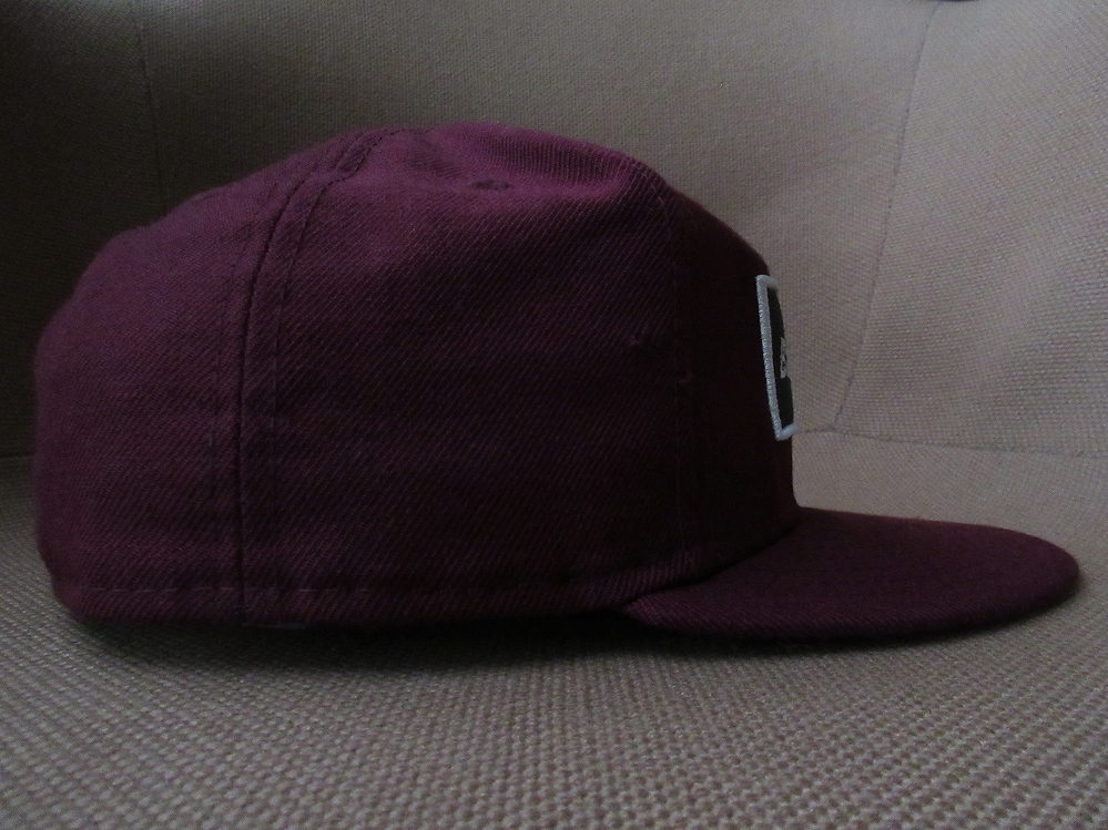 キャップの左サイド(左耳側)付近に、ヤケ汚れ、色あせ汚れ、色むら汚れが見らます。