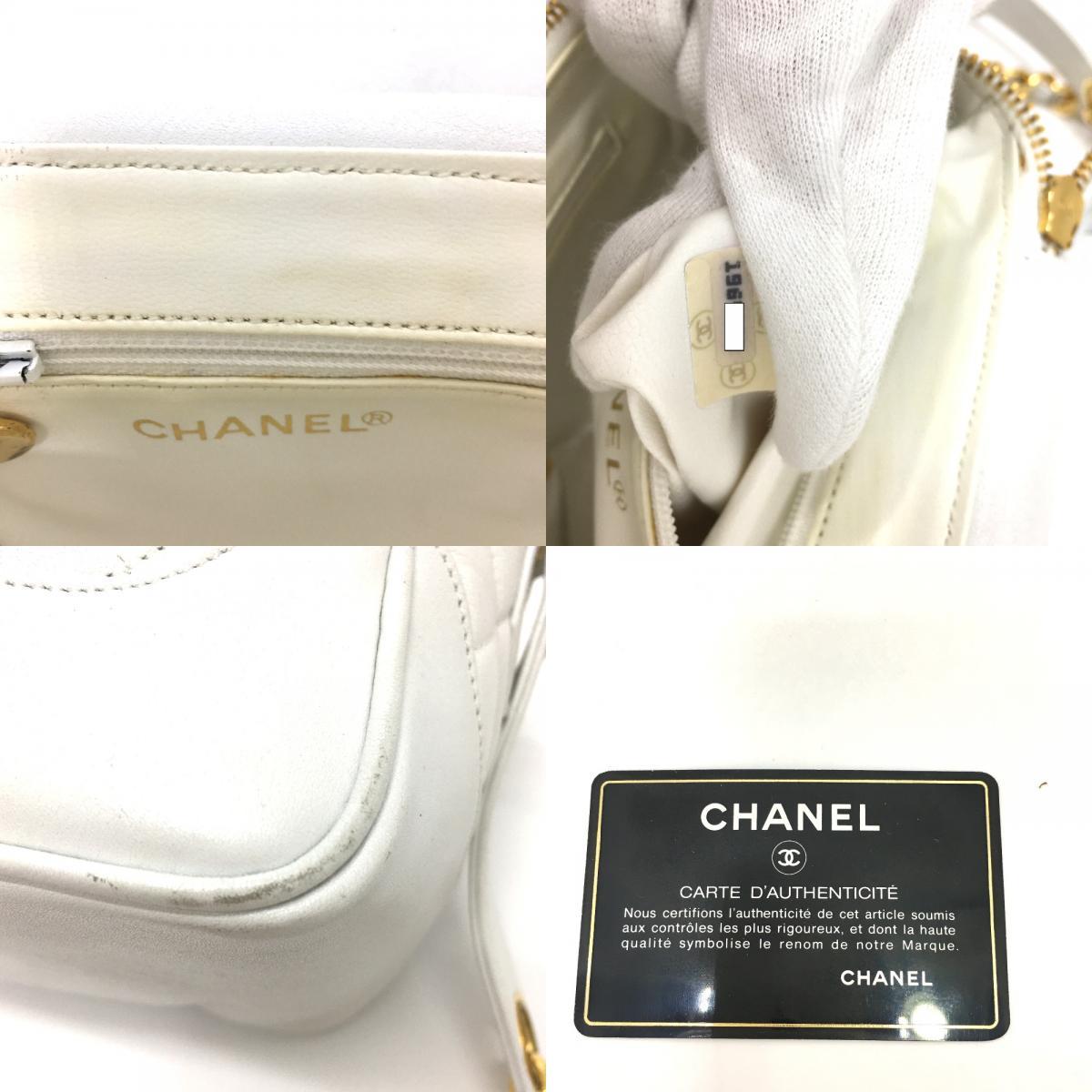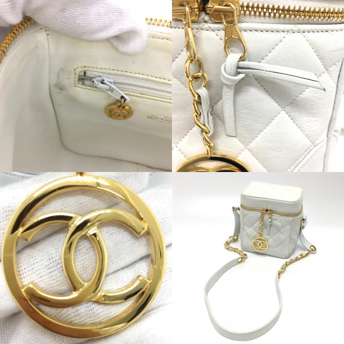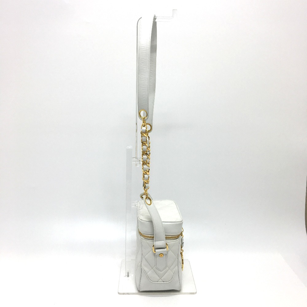 CHANEL シャネル CCチャーム マトラッセ バニティ ショルダーバッグ ラムスキン ホワイト レディース【中古】