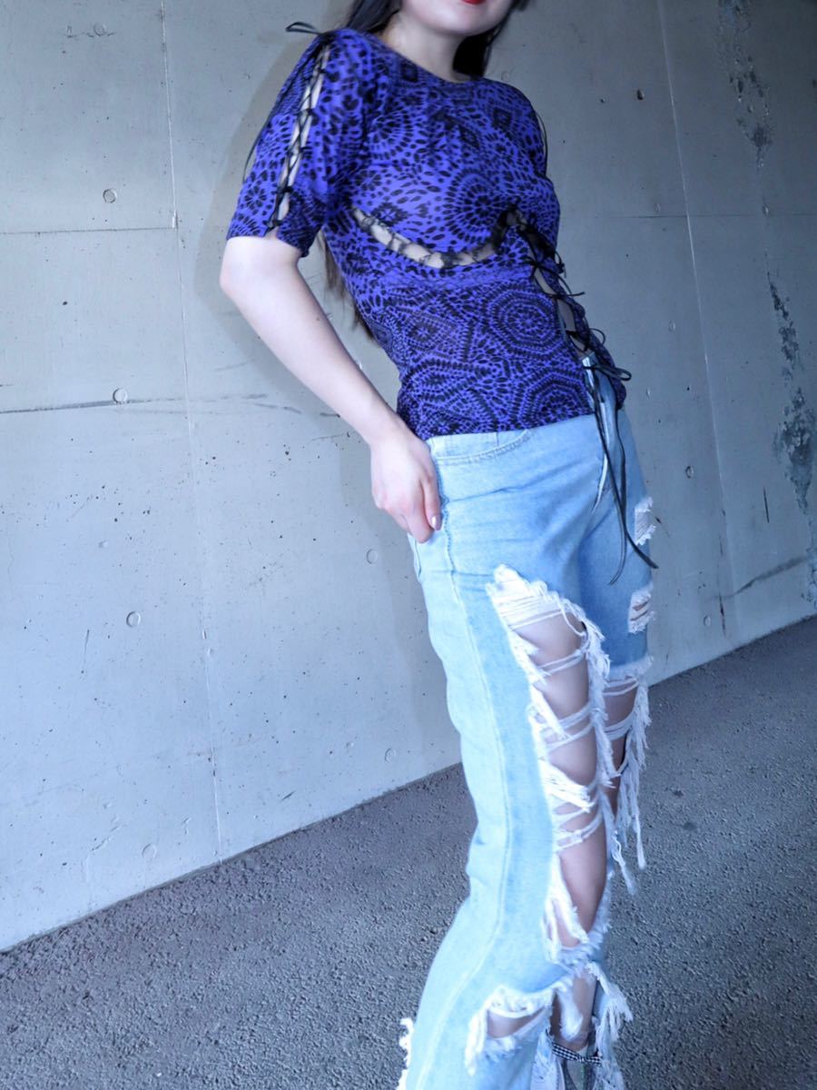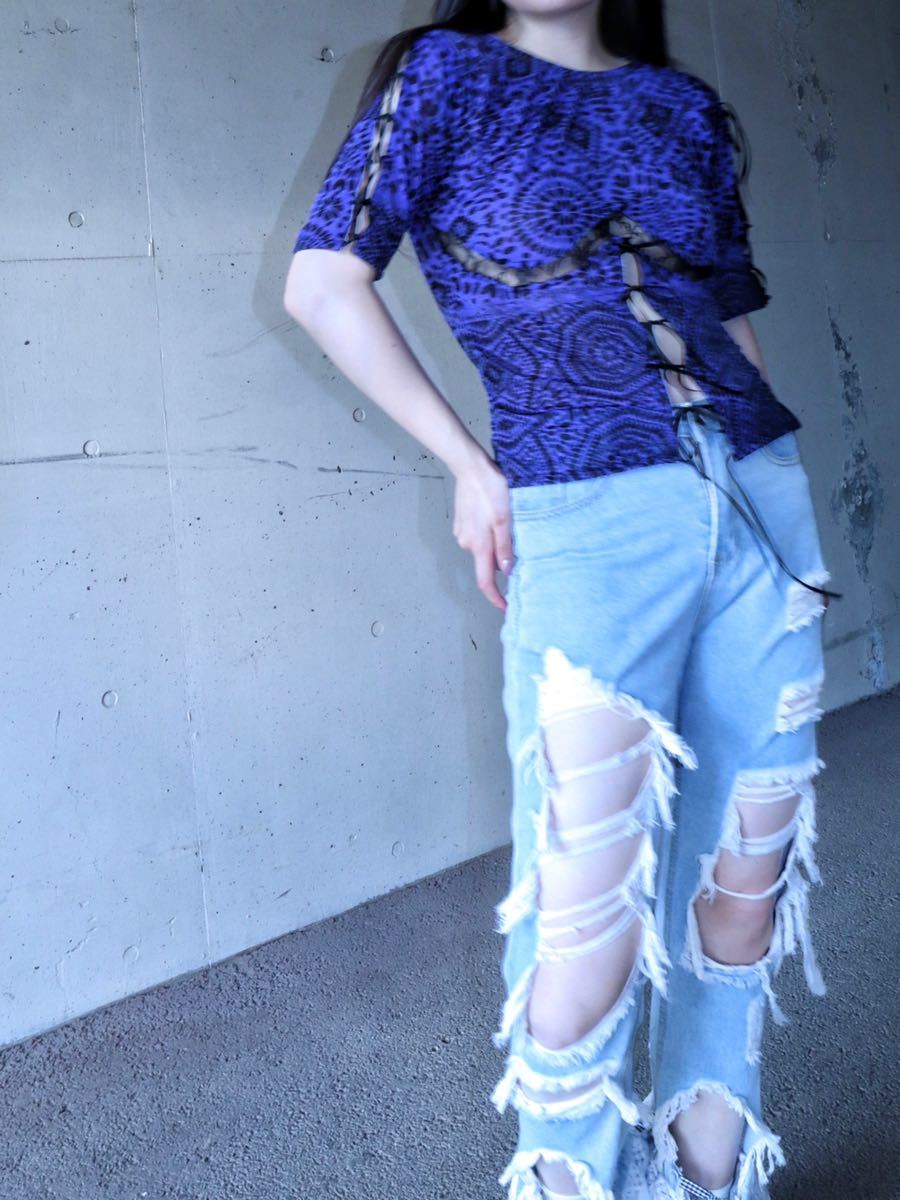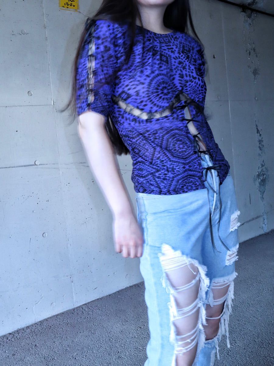 デザイントップス半袖1013BL meikeiin ハンドメイド