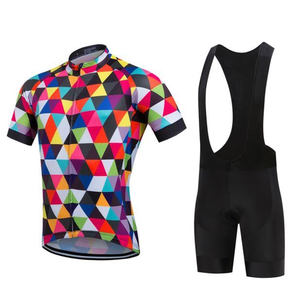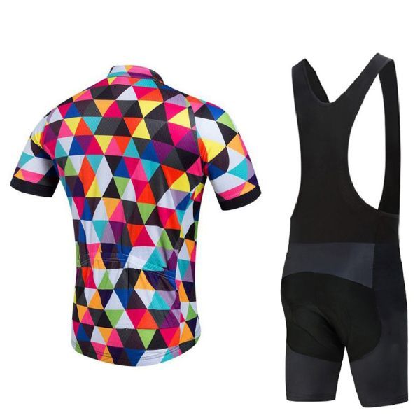 新品 サイクルジャージ 上下セット No1 XLサイズ 幾何学 フルジップ ウェア 半袖 メンズ サイクリング MTB 自転車 ロードバイク