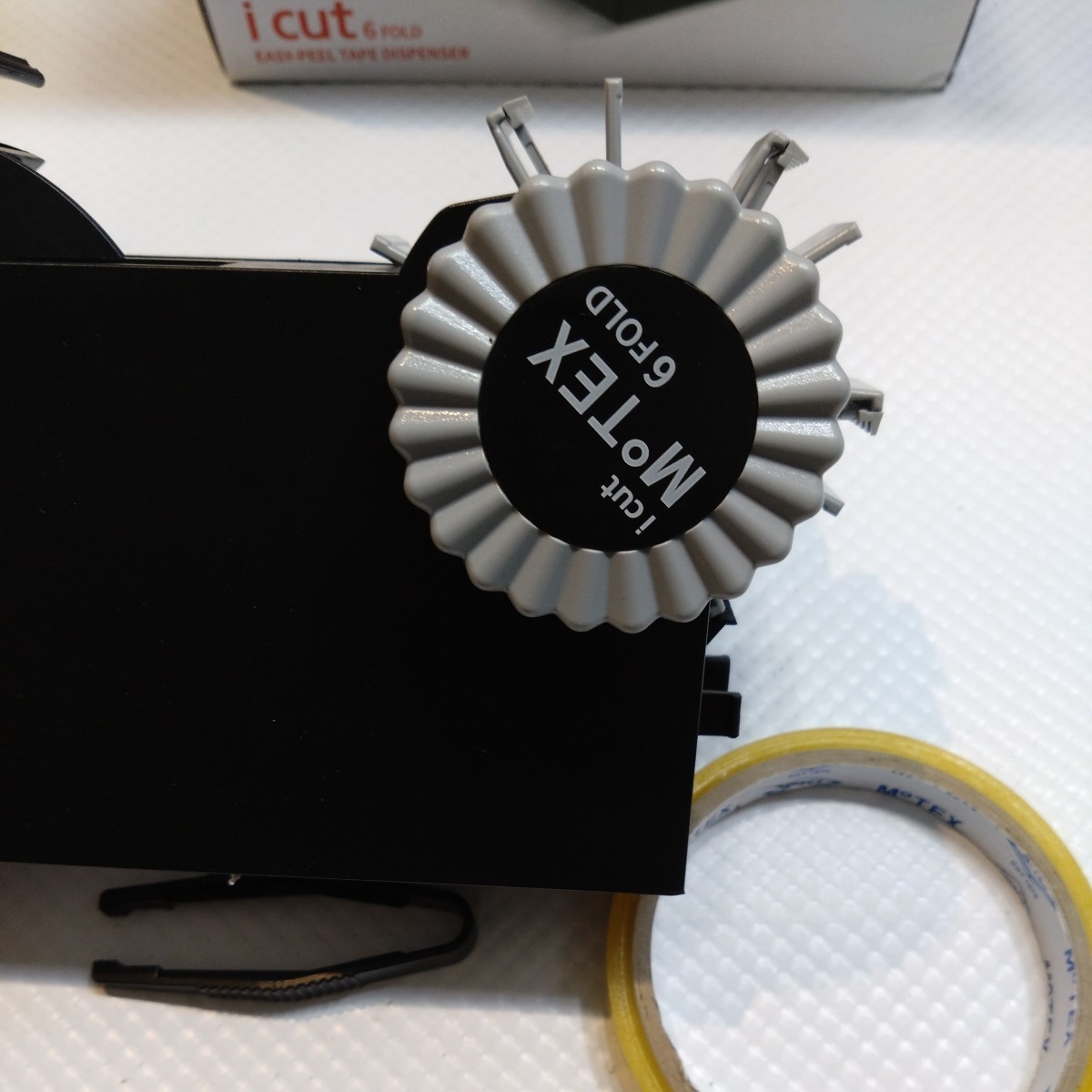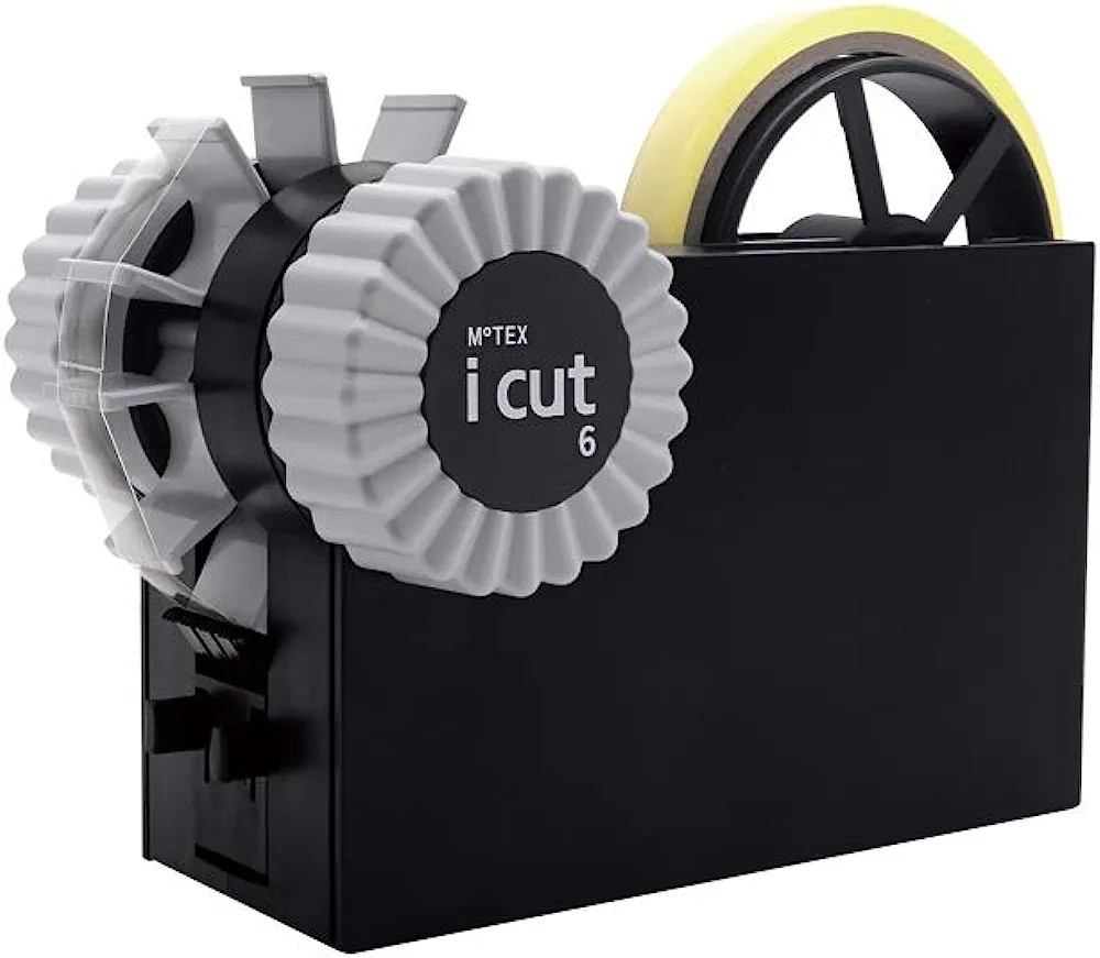 【icut 6】はM0TEX従来の自動カット方式を搭載した最もシンプルなタイプ。ハンドルを回すとテープが一定の長さに自動的にカットされて出てきてくれます。