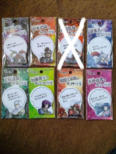 戦国のアルカディアのふせん、7種類セットです。