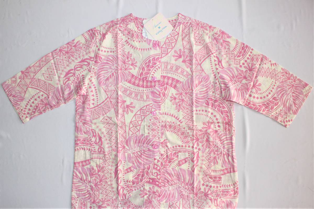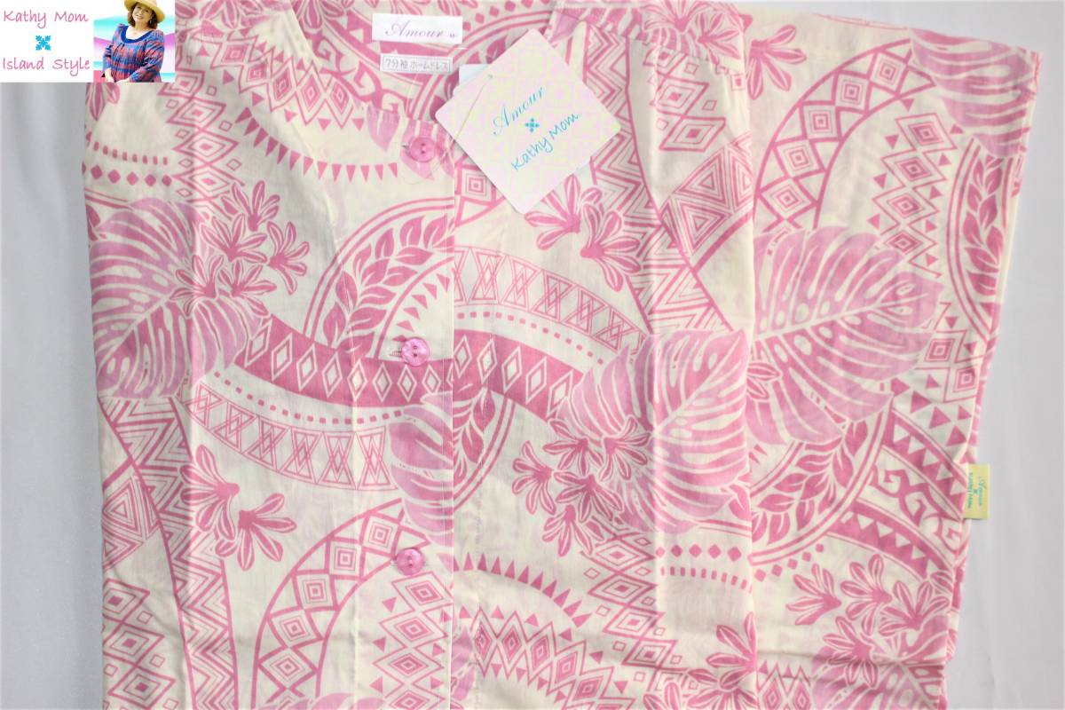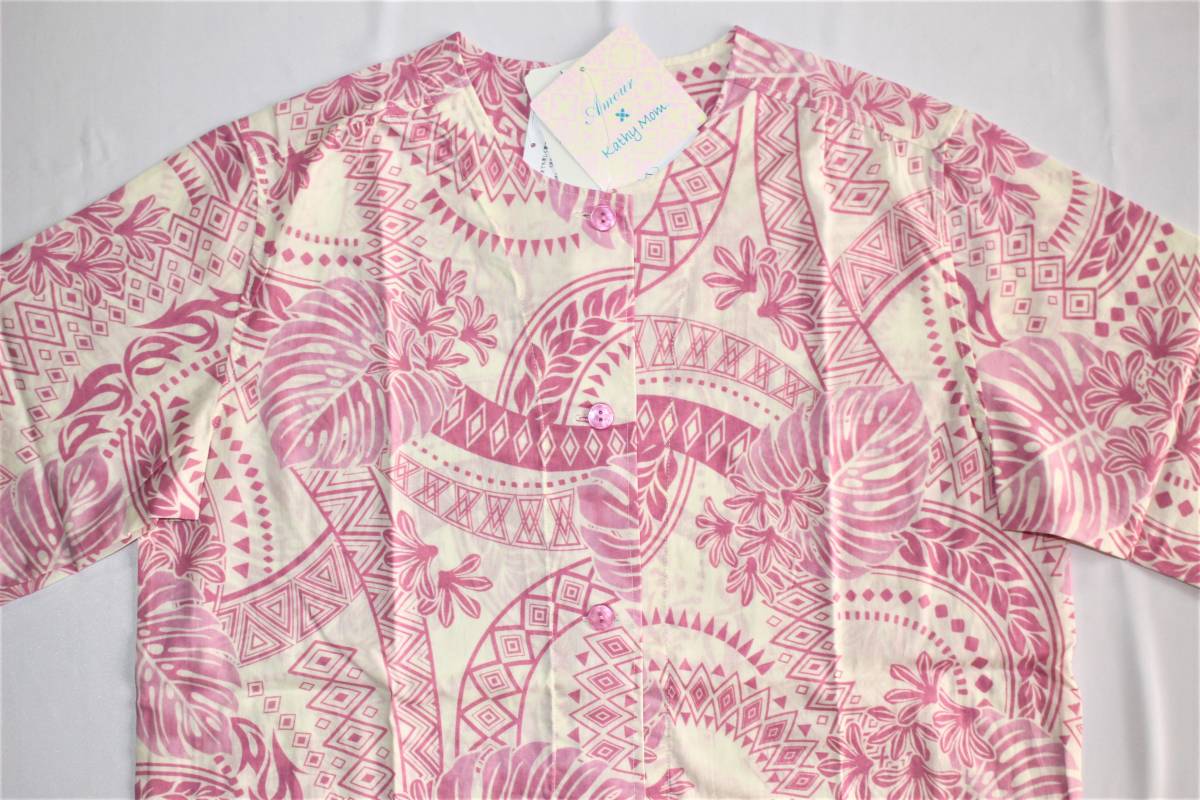KM-16 新品本物即決【M】キャシーマム Kathy Mom 7分袖ワンピース 春夏レディース前開きホームドレス女性用部屋着キャシー中島ハワイ
