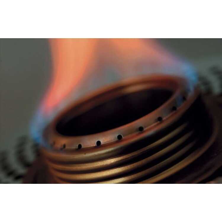 燃焼炎について:初回から数回の燃焼時には内部に入っている芯材が新しいため、炎が赤く見えることがあります。繰り返し燃焼するうちに徐々に赤い炎は治まり、青い色の炎が多く見られるようになります。また使用するアルコールの種類や個体差によって炎の見え方には違いがあります。