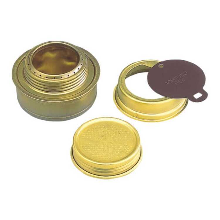 半世紀以上のロングセラーを誇るアルコールバーナーです。アルコールタンク2/3の注入量で、約25分間燃焼します。風や低温に強く、着火も簡単です。使用には純正のゴトクが必要です。必要に応じてスライド扉の開き具合を調整し、タンクに被せて火力調整を行います。