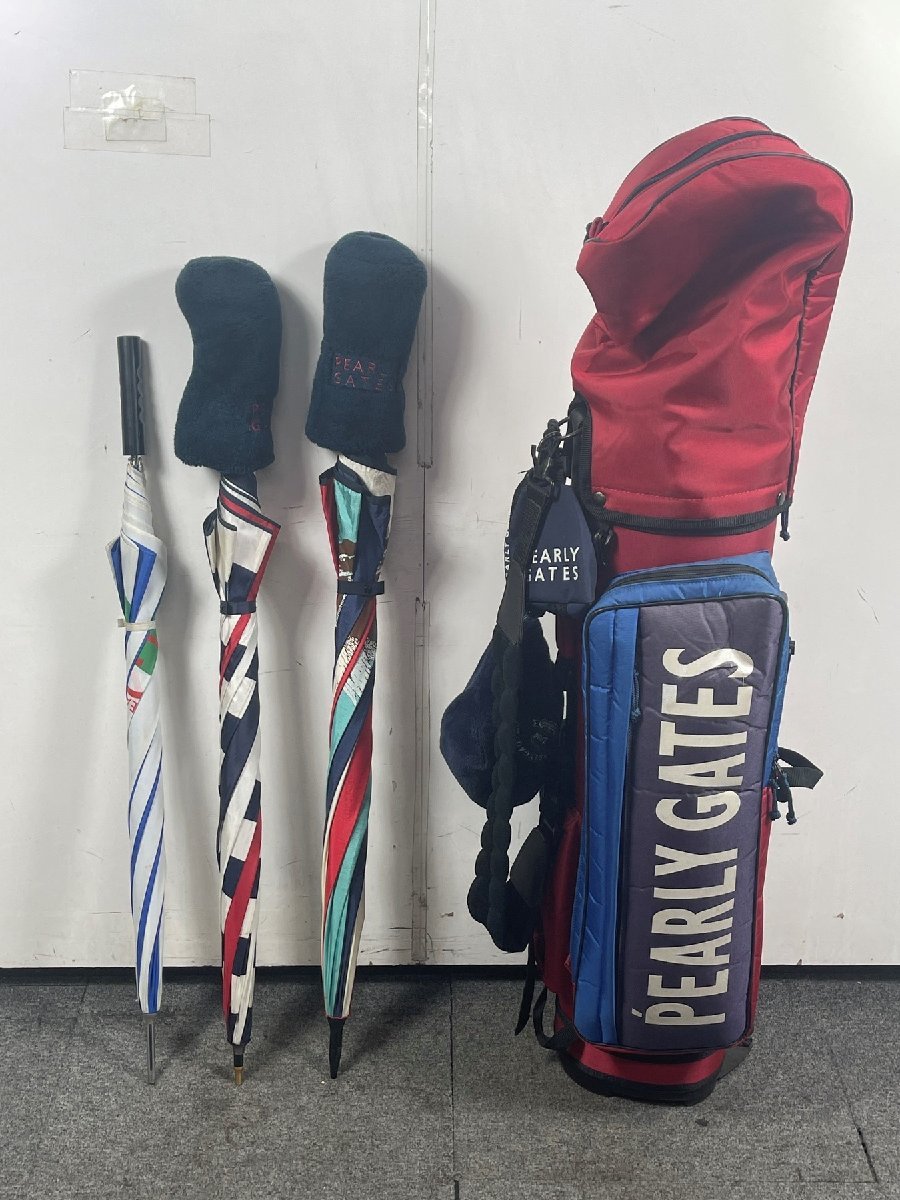 PEARLY GATES キャディーバッグ スタンドタイプ 8.5インチ 6分割 パラソル 3本付き パーリーゲイツ 【現状品】