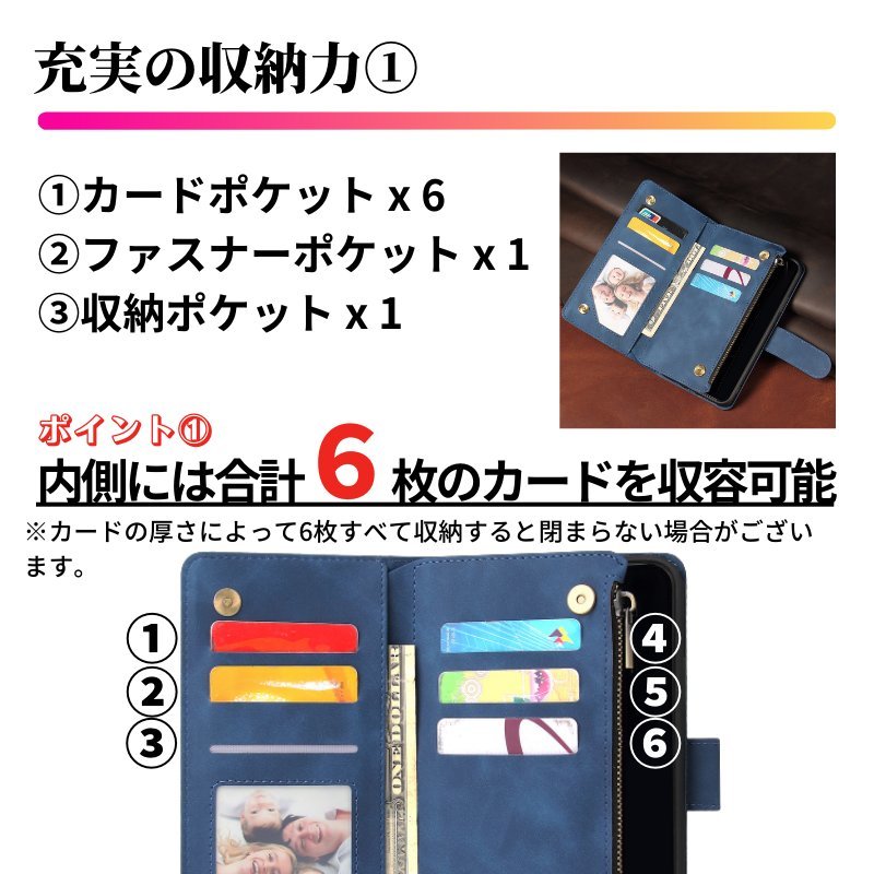 カードポケットx6 収納ポケットx1 ファスナーポケットx1の充実の収納力