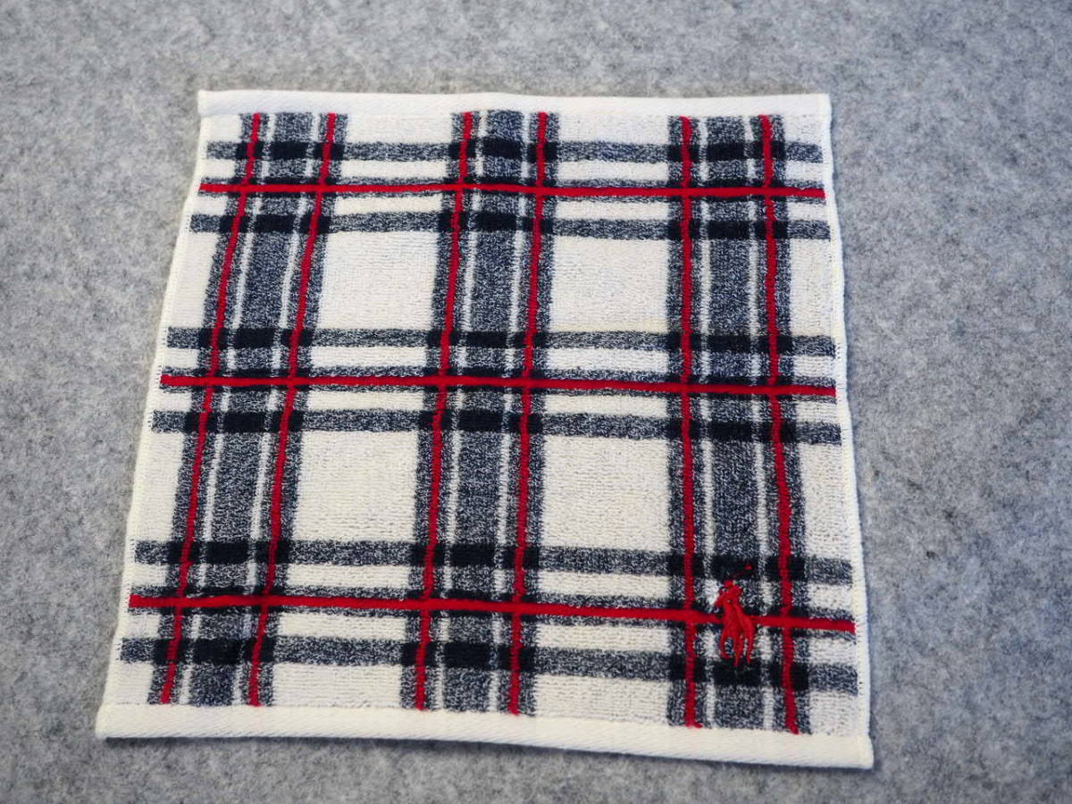 送料185円~◆新品◆POLO RALPH LAUREN◆ポロ・ラルフローレン◆ミニタオル◆26×26◆チェック◆赤ホースマーク