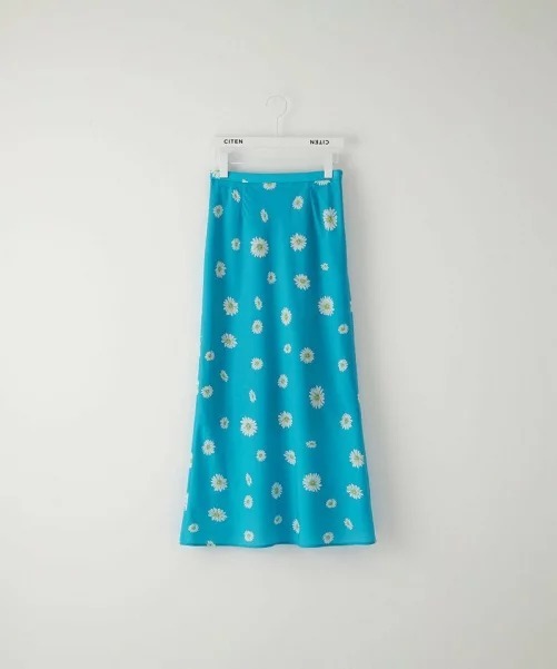 オリジナルのフラワープリントが目を惹くナローシルエットのスカート。