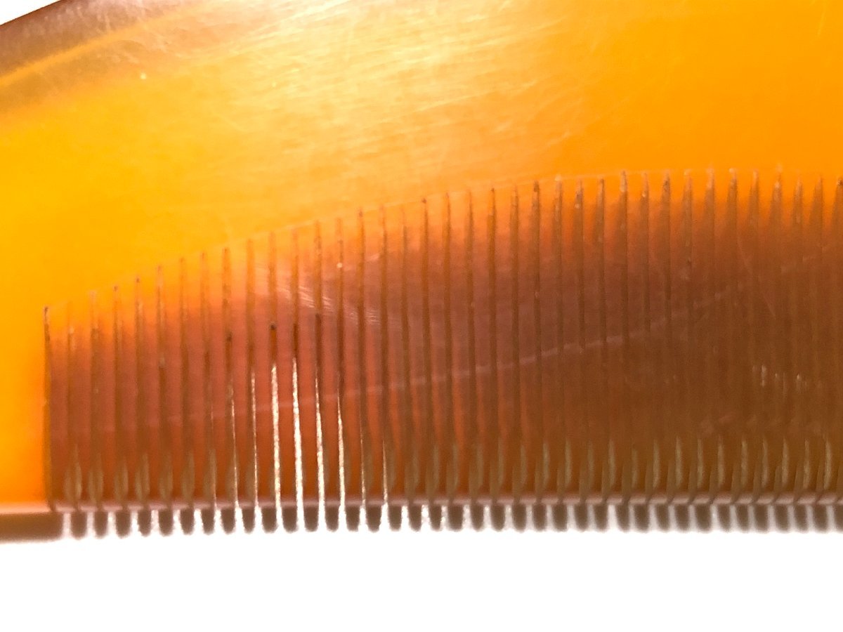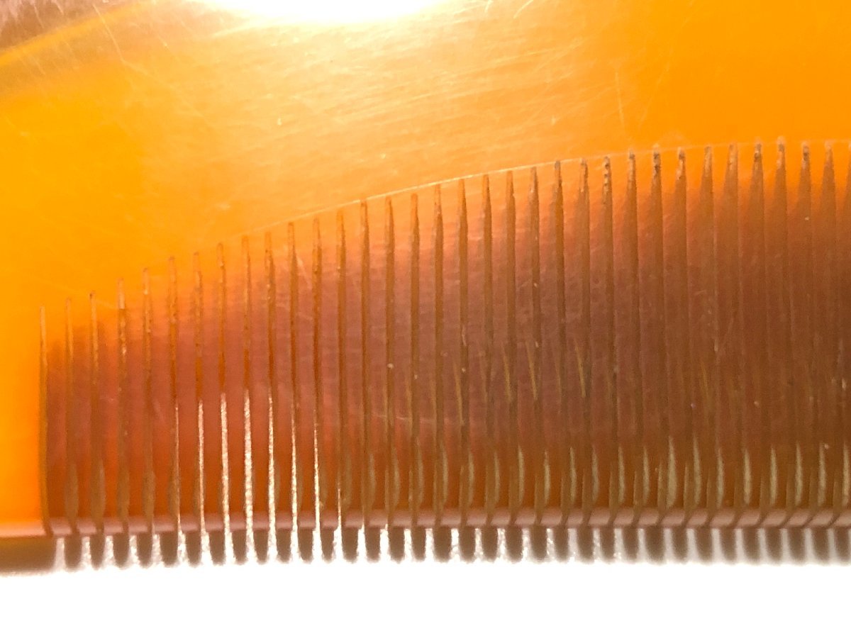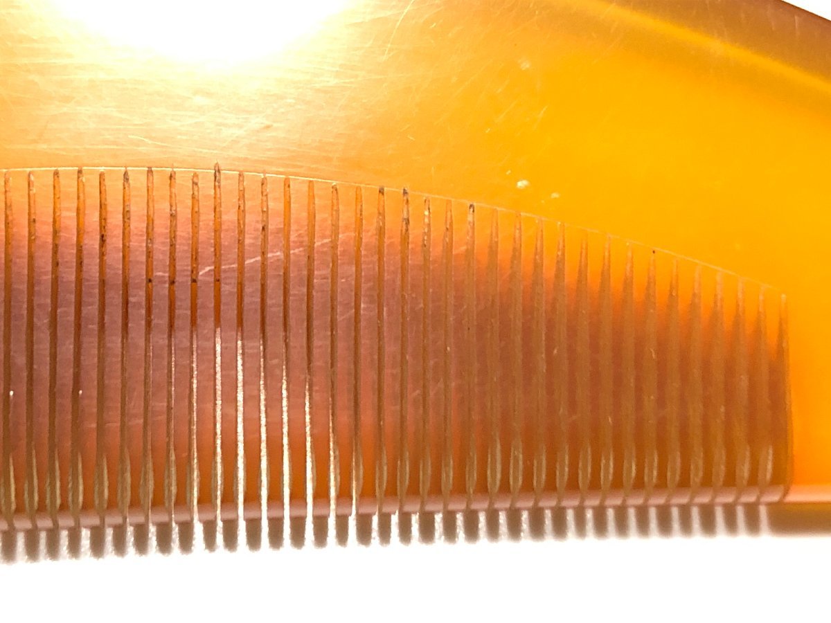 アンティークの白甲の本鼈甲を使用した櫛です。鼈甲部分に欠けや虫食いは無く、状態良好です。