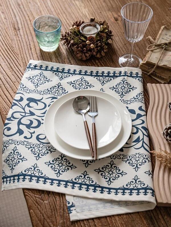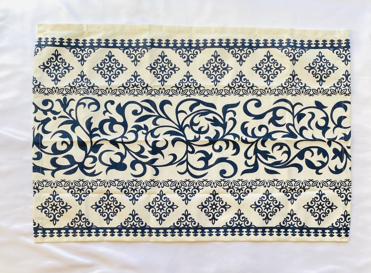 【新品】【送料込み】レトログラフィックプリント キッチンクロス テーブルリネン ランチナプキン 大きめ アイボリー