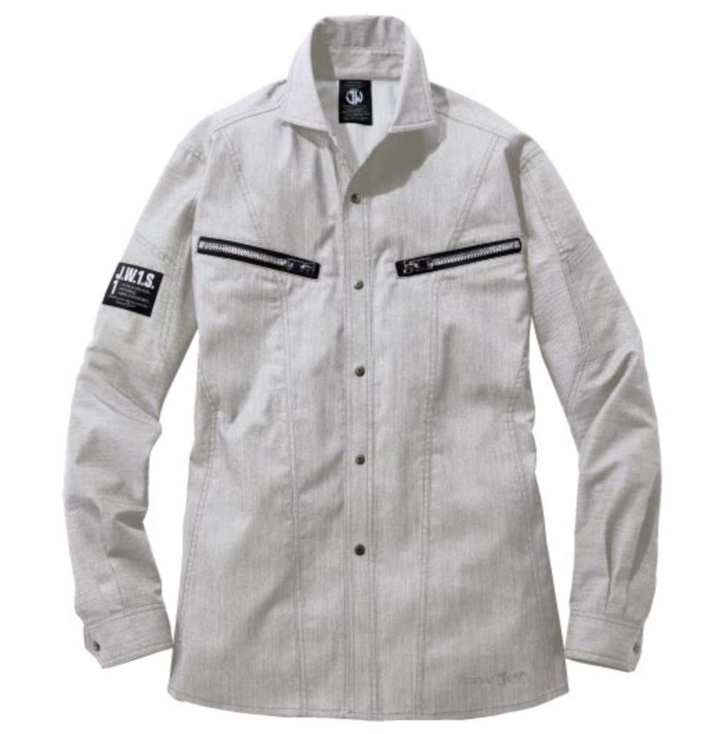 新品即決 JAWIN 57404 春夏 ストレッチ長袖シャツ シルバー ジャウィン 自重堂 デニム JICHODO