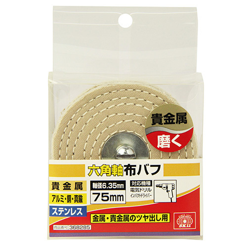 SK11 六角軸布バフ 75mm インパクトドライバー用 ツヤ出し用