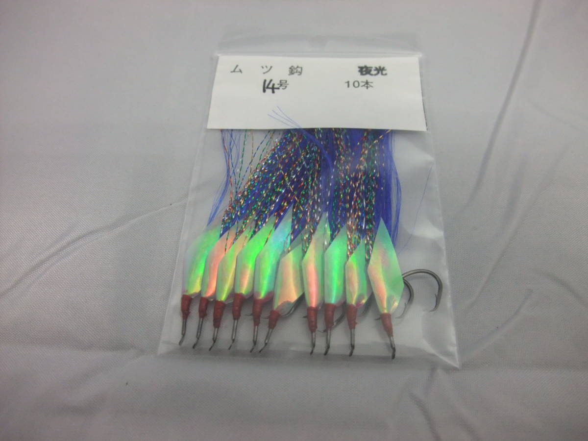 14BYO ムツ14号毛針 青フラッシャー 夜光オーロラシート付き 10本セット