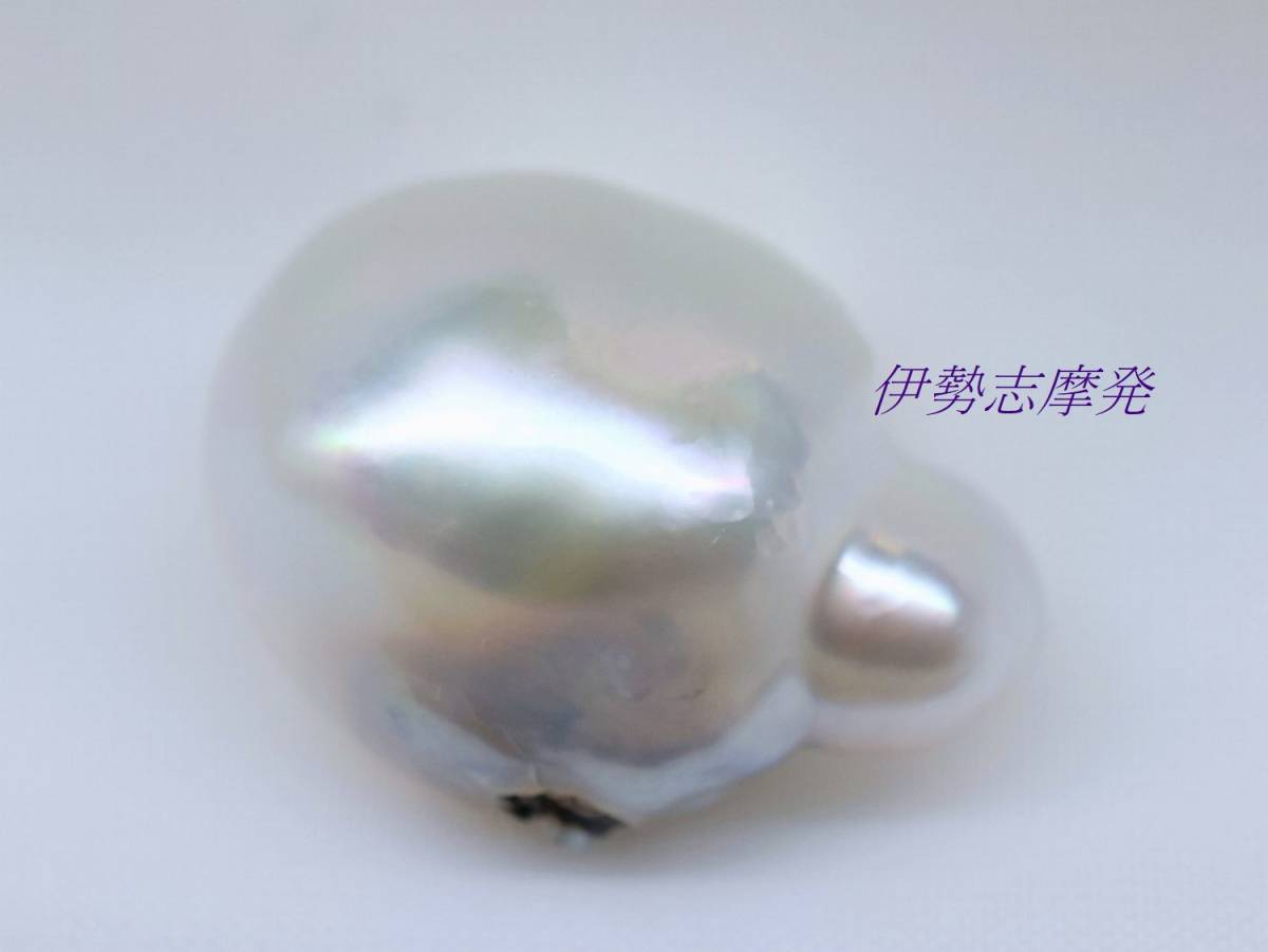 【真珠の種類】 南洋白蝶ナチュラル真珠 【珠サイズ】 縦22㎜x幅16,9㎜x厚み15,85㎜ 【珠の形状】 ジャンボバロック無穴 【色】 メタリックシルバーにグリーンブルーピンクの干渉色 【巻き】 非常に良い◎ 【照り】 非常に良い◎ 【キズ】 ほとんど無し・真珠層の破れ一箇所 【エクボ】 ほとんど無し ◆真珠好きにはたまらない、ダイナミックな存在感を放つ超大珠!またまた特にユニークなフォルム&視線を集める事間違いなしのルースを入荷しました◆ 世界にひとつ現品限り!希少な南洋白蝶ナチュラル真珠のジャンボバロック両穴ルース、何よりも特筆すべきはこのサイズ!縦22㎜x幅16,9㎜厚みまで15,85㎜と想像のつかないボリューム!圧倒的な存在感です! ナチュラルカラーなのでテリも抜群でシルクのような幻想的な艶めき、重厚でリッチな真珠光沢!メタリックの掛かったシルバーにグリーンやブルーピンク等の干渉色の出た神秘的で美しいレインボーカラー 見惚れる美しさです。 バロック特有の凹凸も醍醐味の一つ、素晴らしいフォルムと半端ないサイズはきっと皆が二度見されることでしょう。大いに自慢して!主役級の存在感を誇るインパクトパールでおしゃれの幅を広げてください。 前から横から斜めから、見る角度で全く違った顔を持つ、同じものが二つとない個性的な形のバロックパールは一期一会の真珠です! 此方はリペア部分はありませんが画像6枚目に大きく写した、真珠層の破れが一箇所あり。裏側にしてお楽しみ下さい。 兎に角最高の色で輝きが半端ない美珠!ネックレスやペンダントトップ、その他タイタック、リングにブローチと貴女だけのオリジナル作品作りに是非お役立て下さい。 無駄なコストを掛けない、だからこそ此の驚き価格でご提供できるのです。お目に留まったら是非!二度と此方のようなお値段ではご提供できません。 | ||||||||