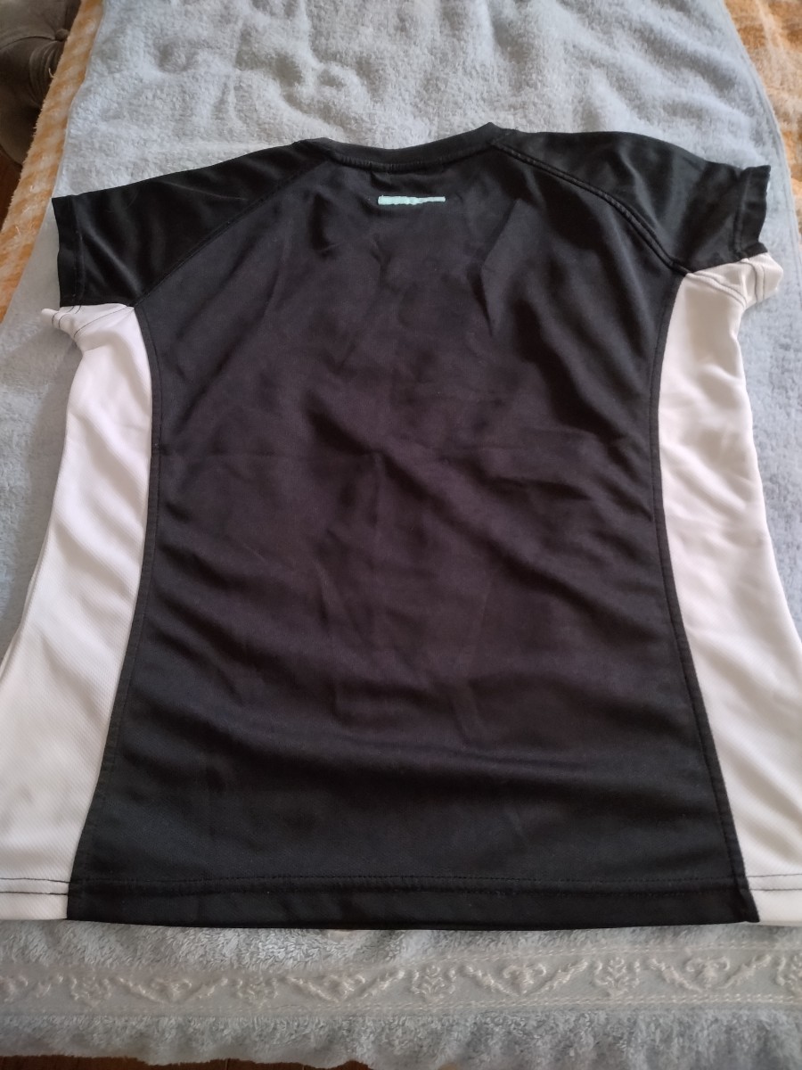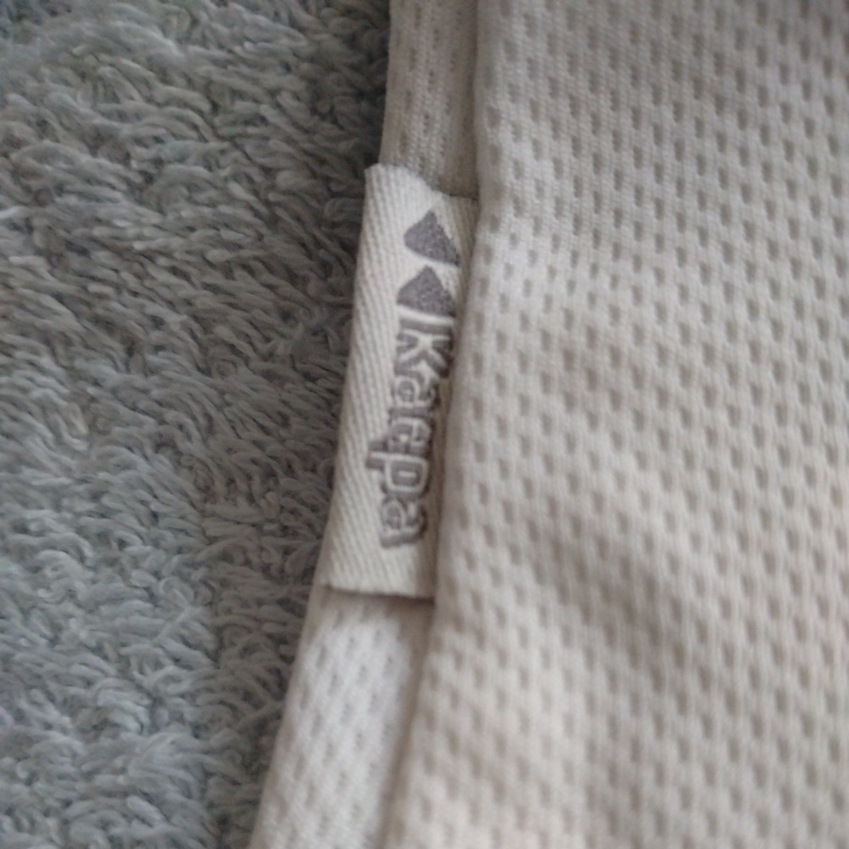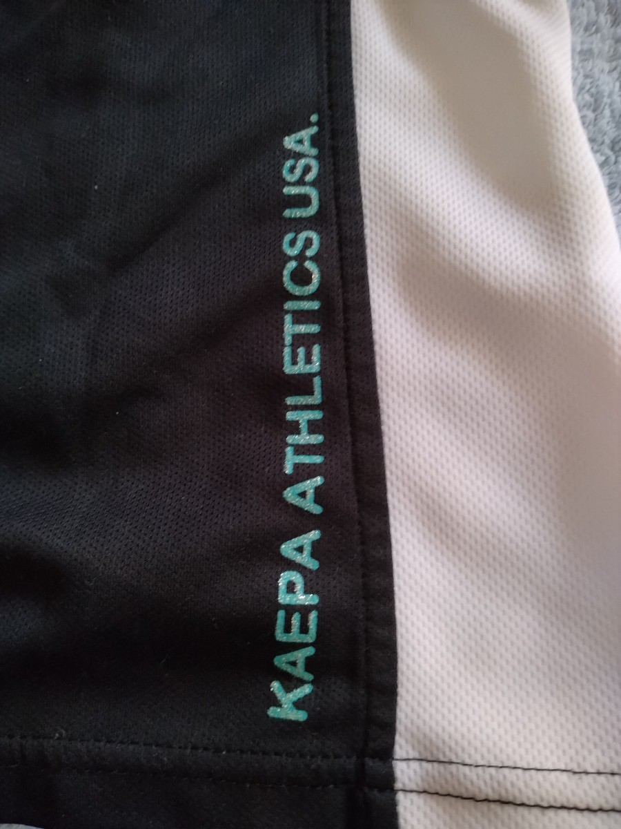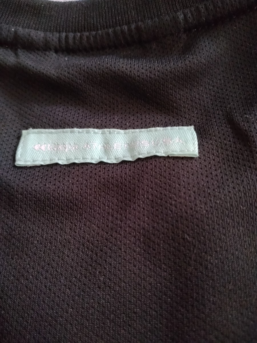 kaepaのメンズLサイズのストレッチ組成Tシャツです。素人の平置き採寸ですが、全丈55㎝裾幅45㎝袖長8㎝ぐらいです。黒地に脇腹部縦にメッシュ素材白の縁取で両肩部のグリーンストライプがアクセント効いていてエレガントです。ゆうパック紙袋若しくはパケ封筒にて東京都内から発送の予定です。尚、画像にあるメジャーはサイズ感を伝え易くするための比較物であり商品の付属品ではございません。