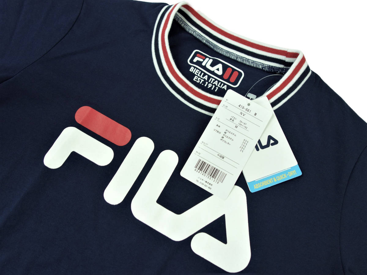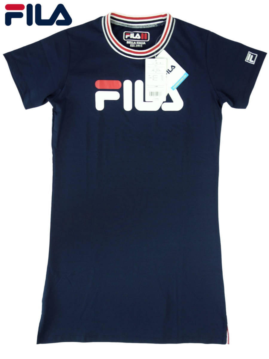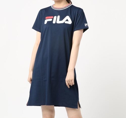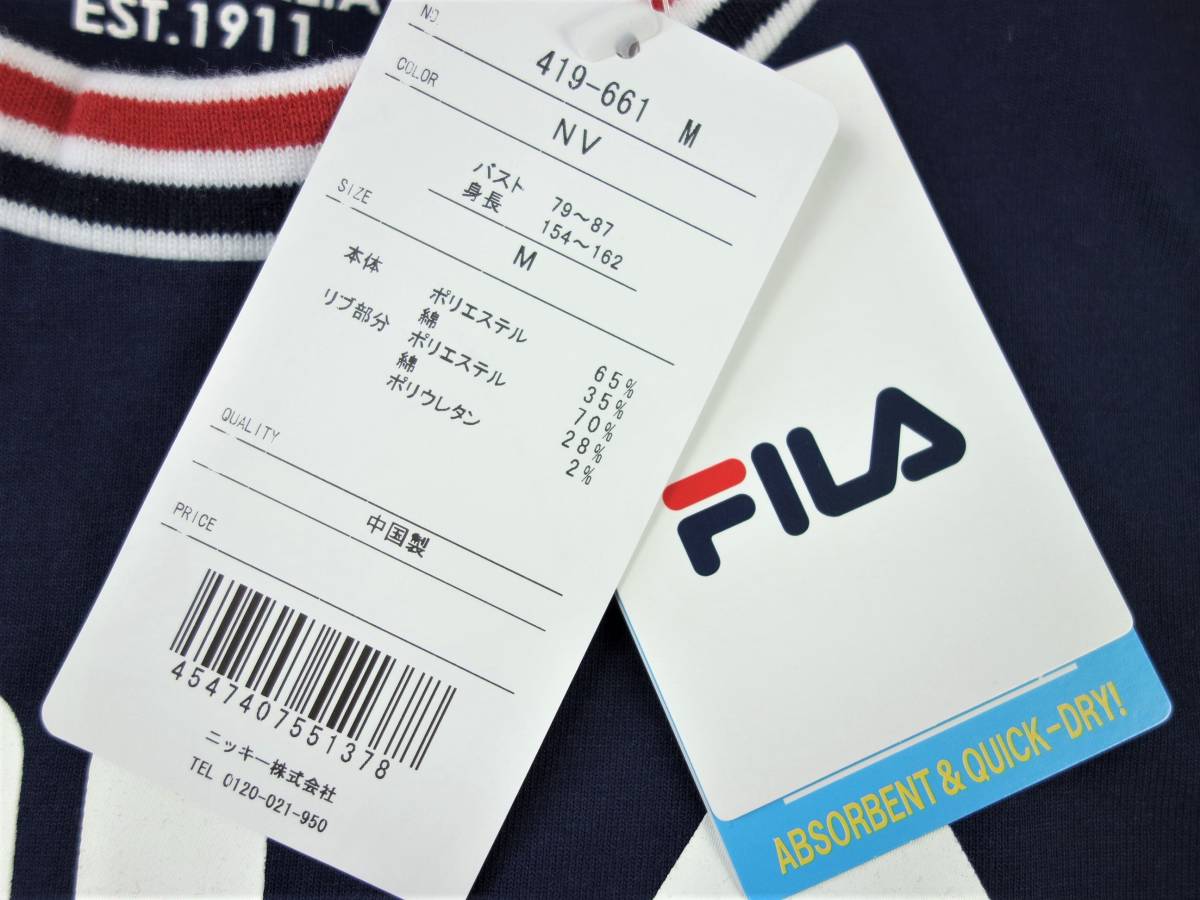 【未使用タグ付】FILA 吸水速乾 切替ラインフロントロゴワンピース Mサイズ ネイビー 紫外線遮蔽率90%以上 フィラ 夏 スポーツ シンプル