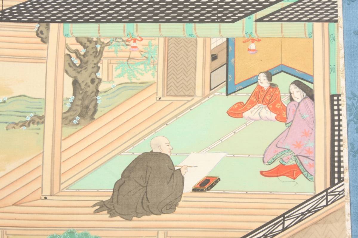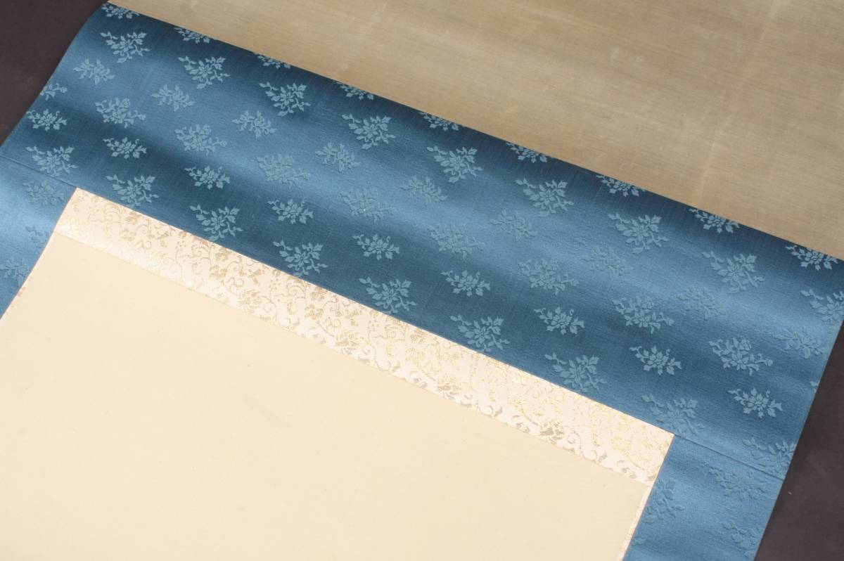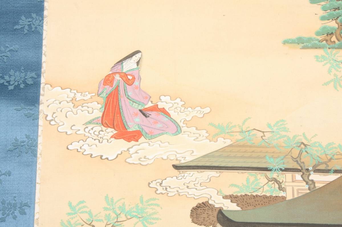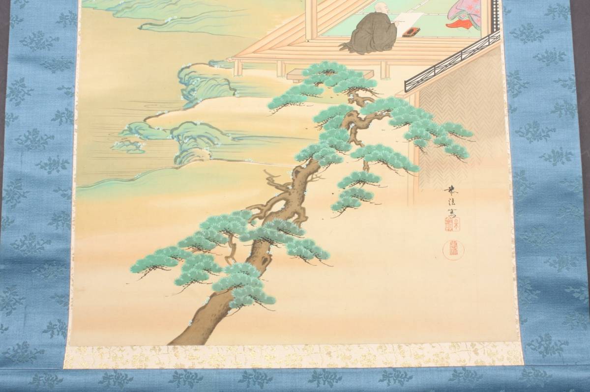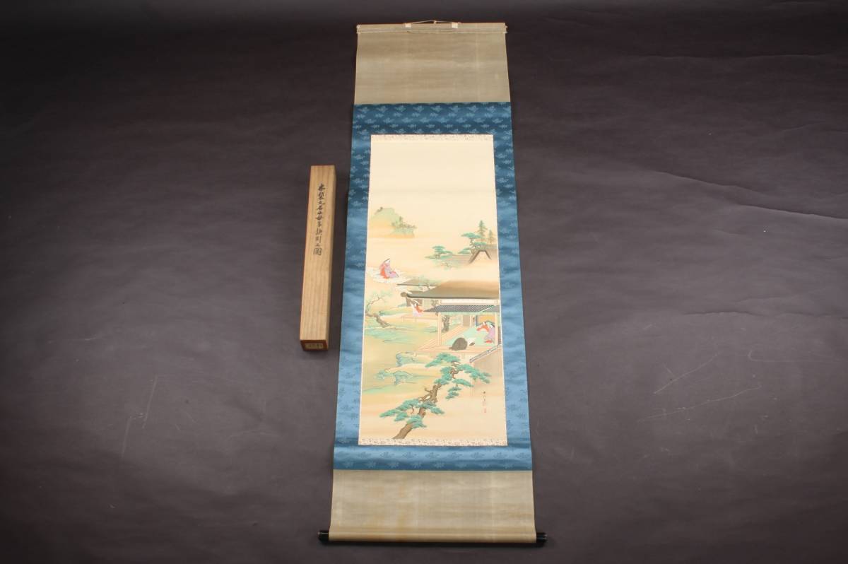 4285 大正9年 庚申春日 奥村恭法 写 布袋丸石山母子訣別之図 山水画 掛軸 190cmx55cm 共箱